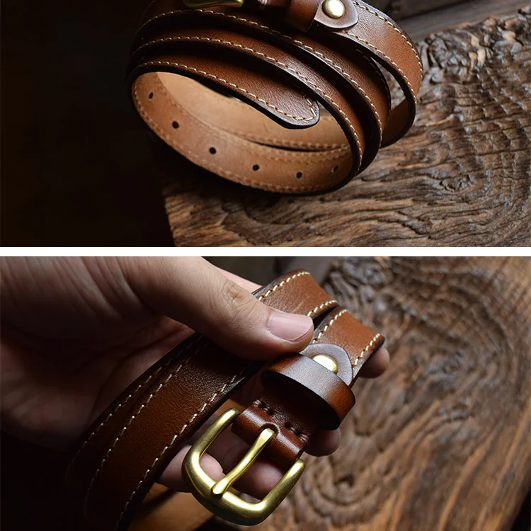 手工皮帶 / 23mm腰帶 / 復古頭層牛皮 / 母親節禮物 / 黃銅