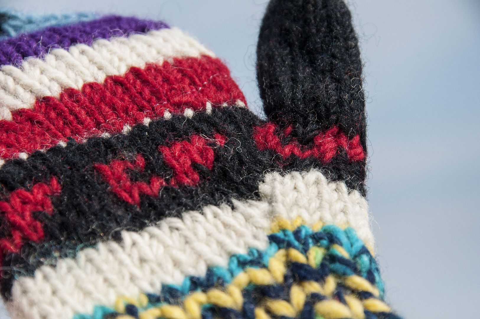▲由設計師設計,尼泊爾手工編織的純羊毛手套,帶出春天陽光下的溫暖氛圍