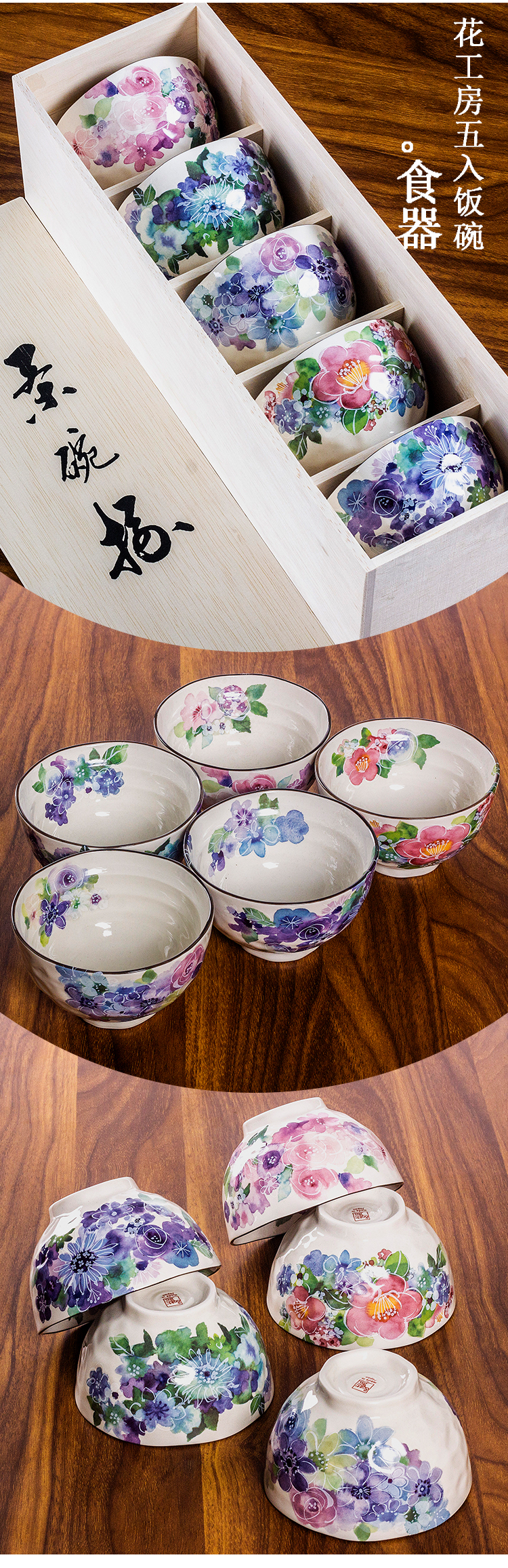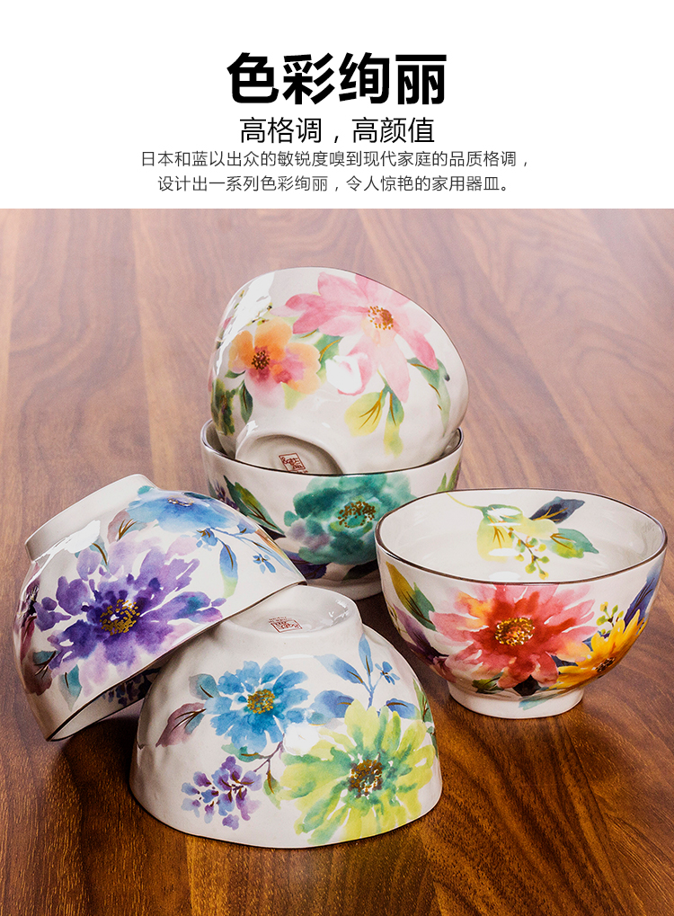 日本製美濃燒和藍水彩花家用花卉陶瓷餐具米飯碗湯碗節日送禮盒裝