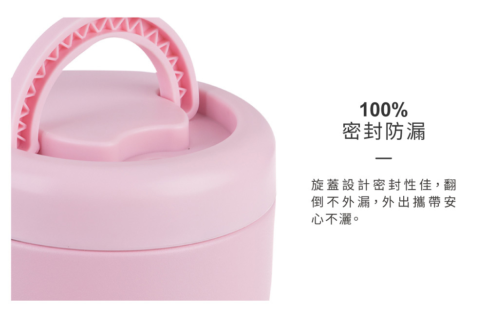 大寬口設計裝填不費力,用湯匙挖取也不卡手,清洗超方便;旋蓋密封不外漏,加上耐刮耐磨瓶身與好提不勒手的提把設計,不論是辦公、露營還是學校生活,都能成為你最靠得住的日常便當罐。