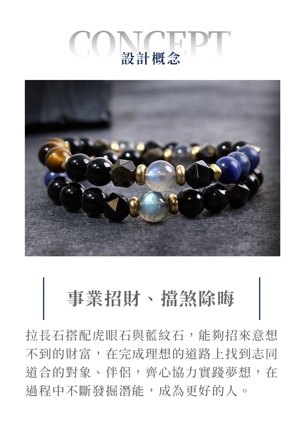 領航者 | B15虎眼石藍紋石拉長石黑曜石雙圈手鍊