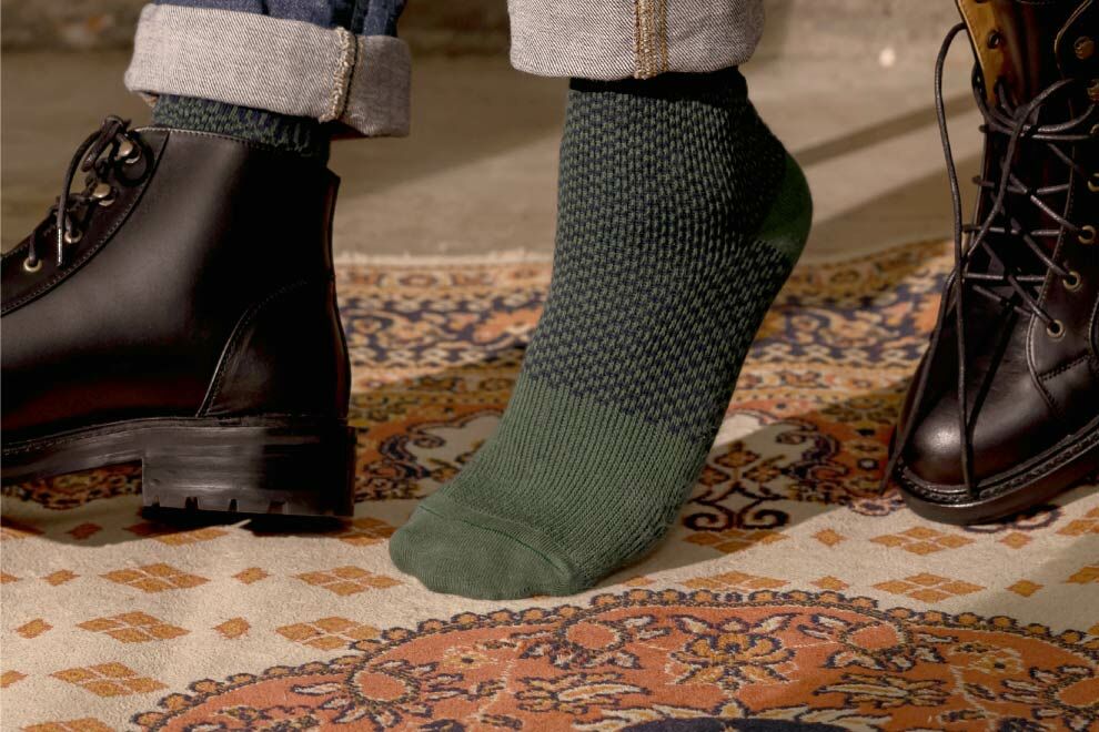 在色彩選擇上,這次以增添穿搭層次為出發點,十分適合婚禮、節慶等場合。低調的深色搭配,即使與商務套裝一同穿著也不顯突兀,反而更顯品味,是一款讓整體造型更添格調的紳士襪。