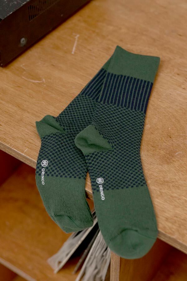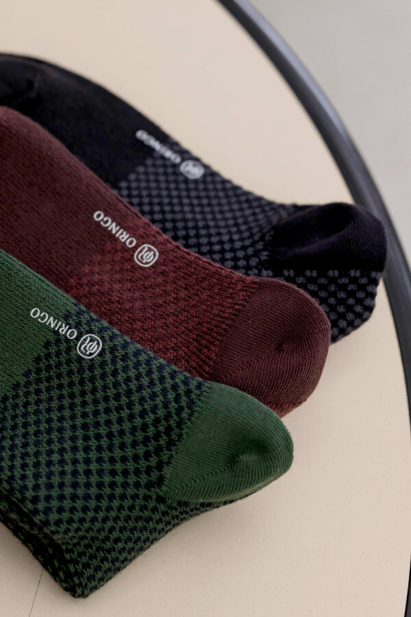 紳士襪是不可或缺的重要單品,不僅是讓穿搭更出眾的配件,更是體現得體與禮儀的關鍵細節。這款襪子以直條紋與格紋為基礎,透過緹花與色彩對比的設計,營造出交錯的網格效果,呈現立體而細膩的視覺層次感,繁複中顯露精緻,是紳士襪的絕佳典範。