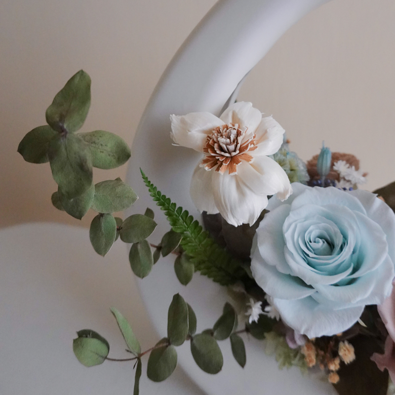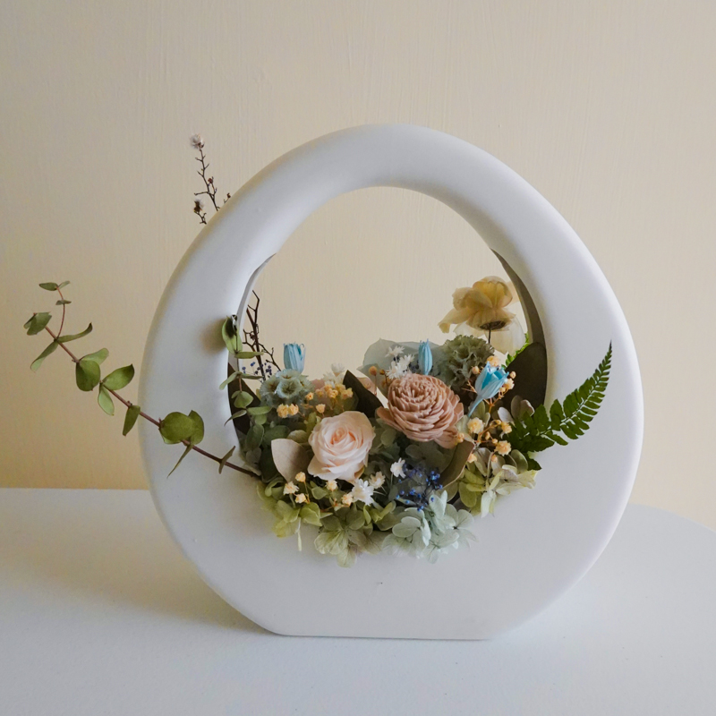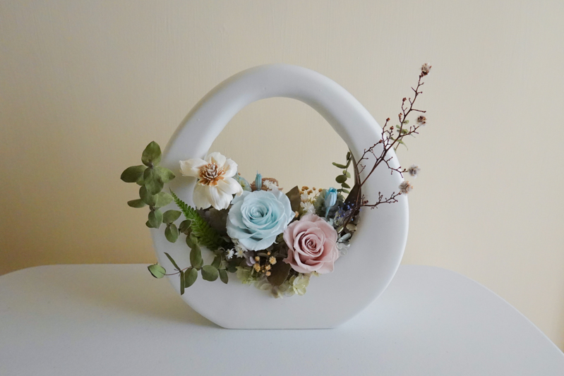 材質:永生花數朵、索拉花2朵、乾燥花、瓷器