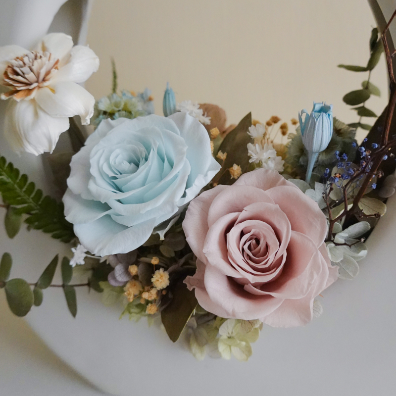 永生花是由鮮花經過特殊處理後製成的花材,可保有鮮花般的觸感與顏色,