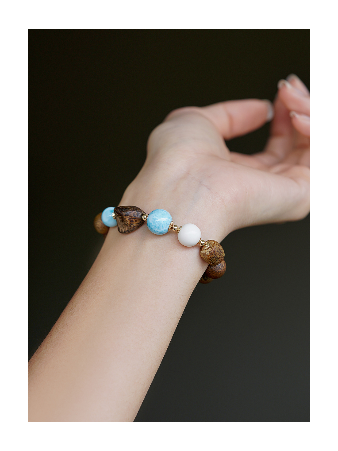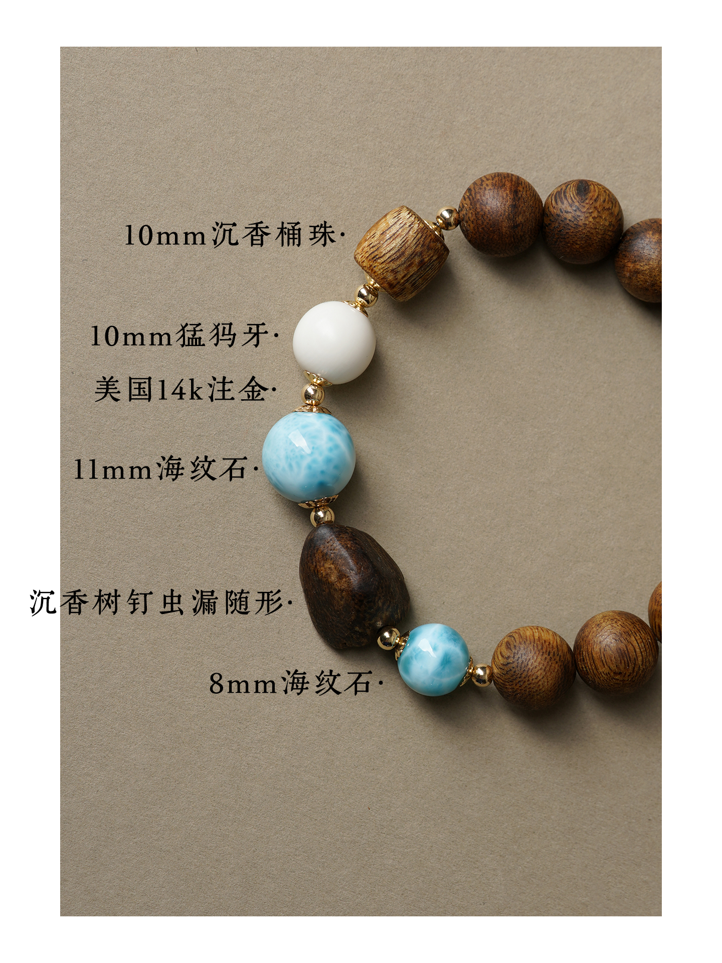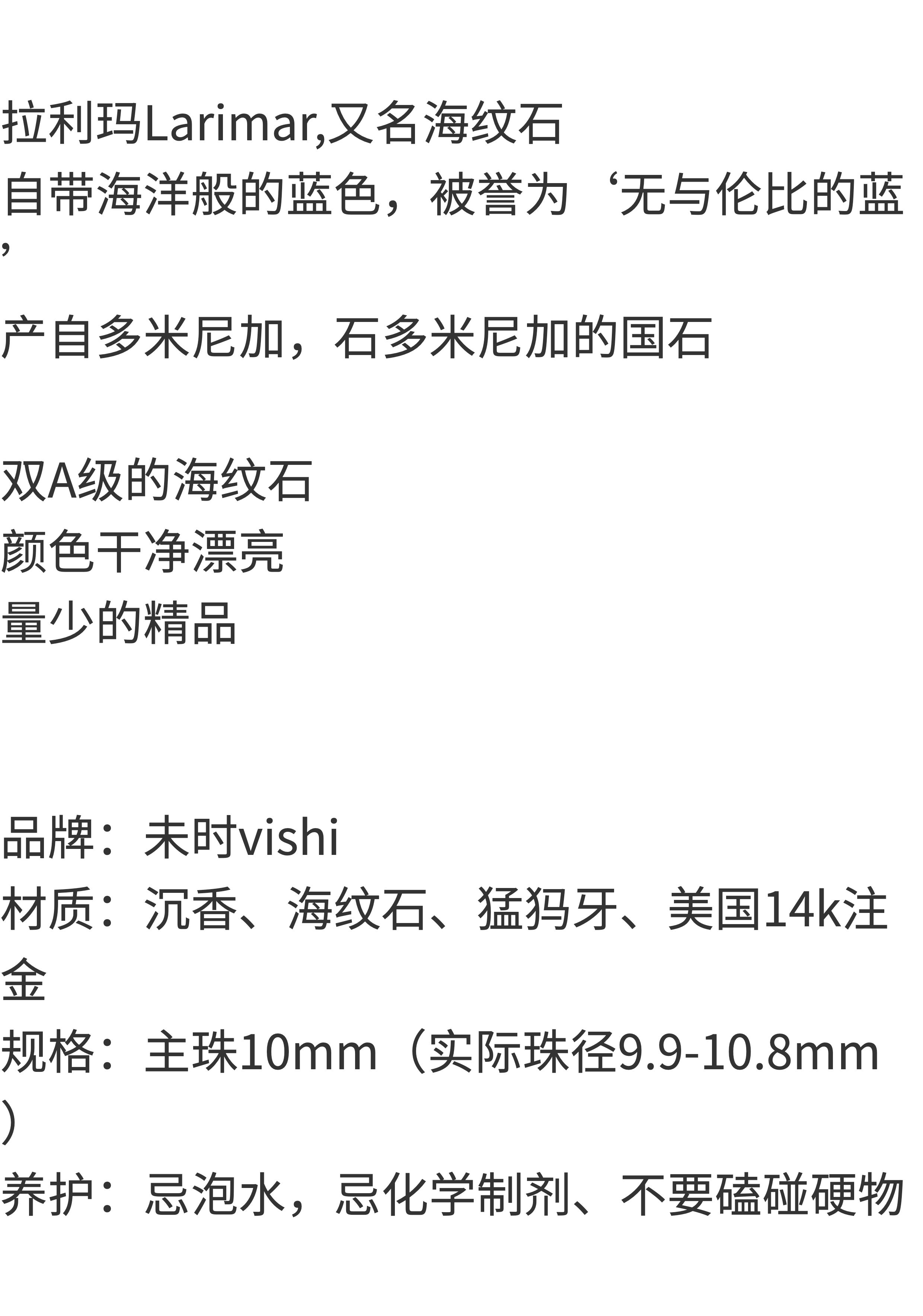 10mm海紋石手串 未時VISHI多米尼加拉利瑪手鏈串珠針鈉鈣石女中式