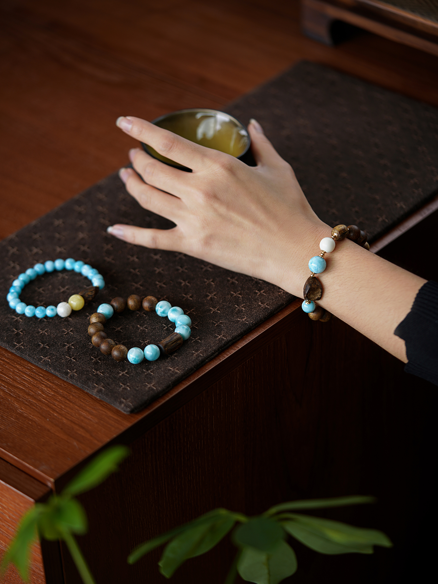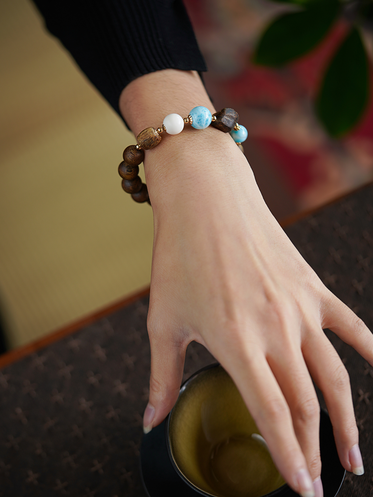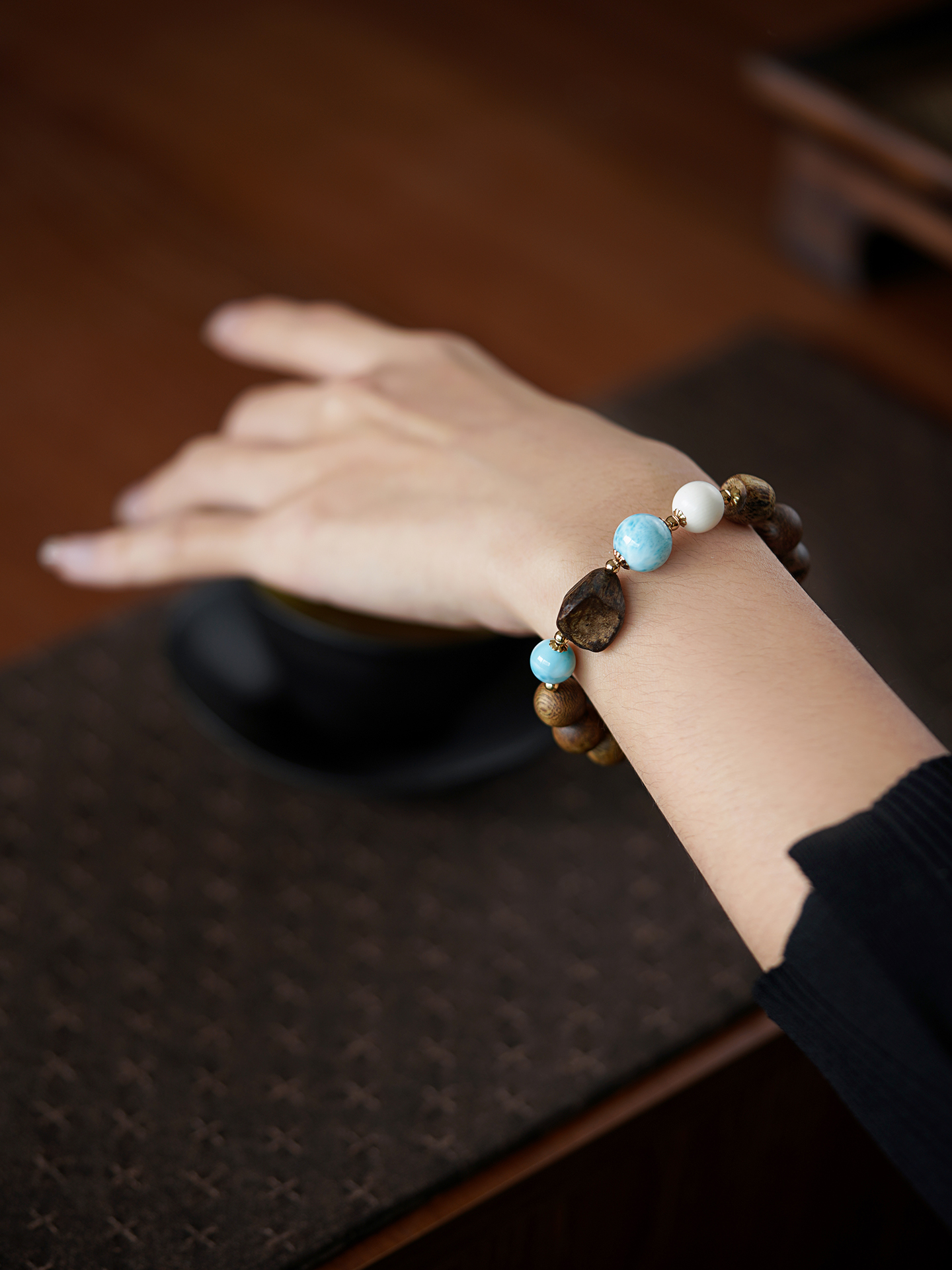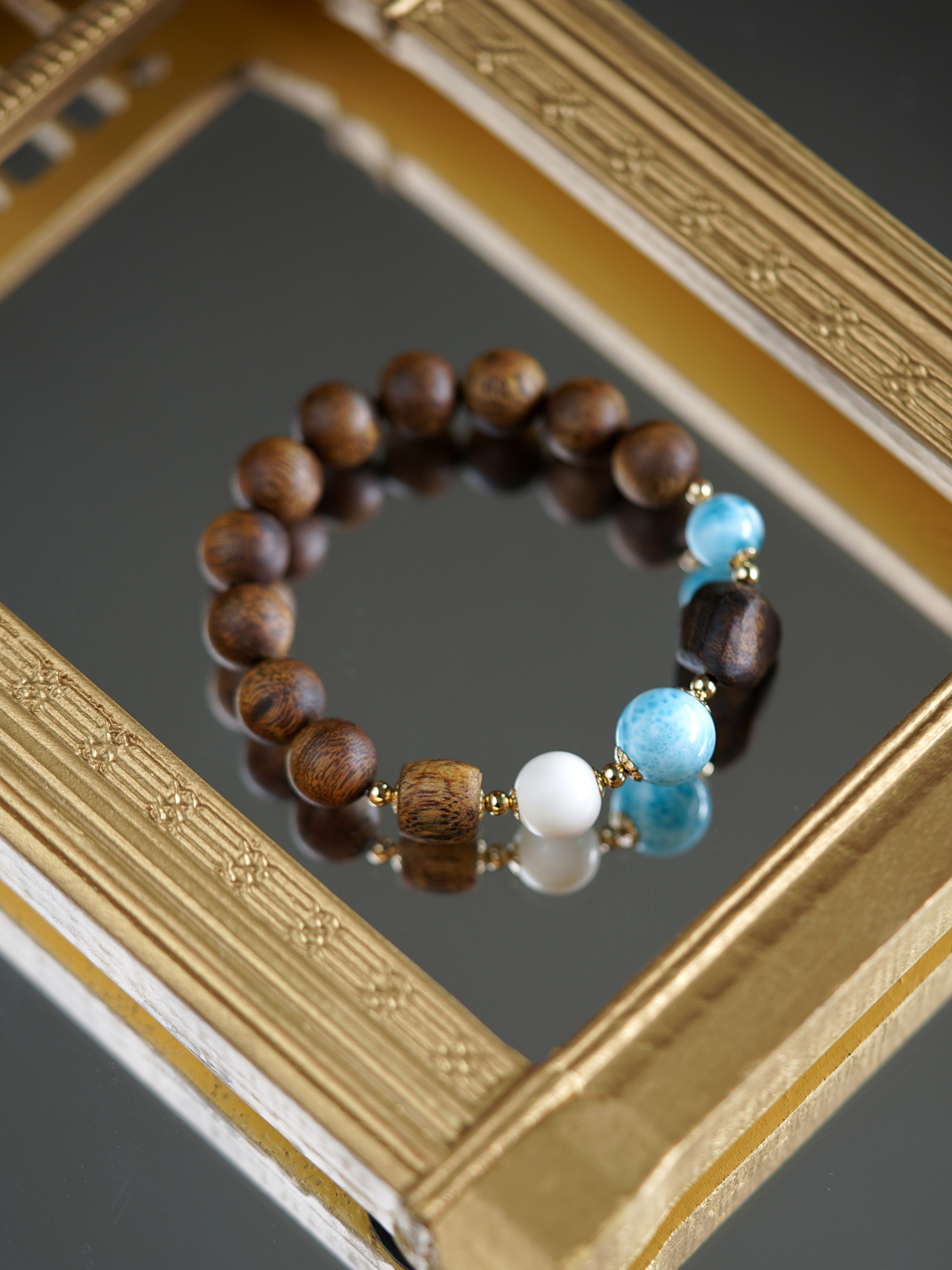 10mm海紋石手串 未時VISHI多米尼加拉利瑪手鏈串珠針鈉鈣石女中式