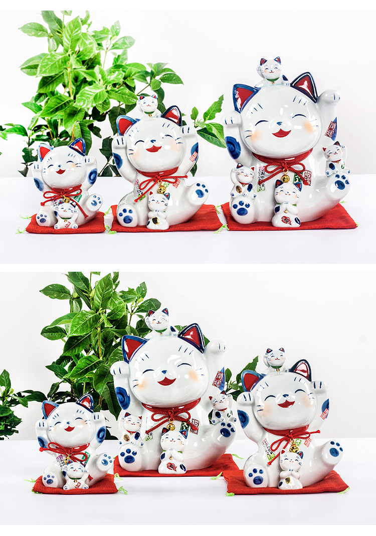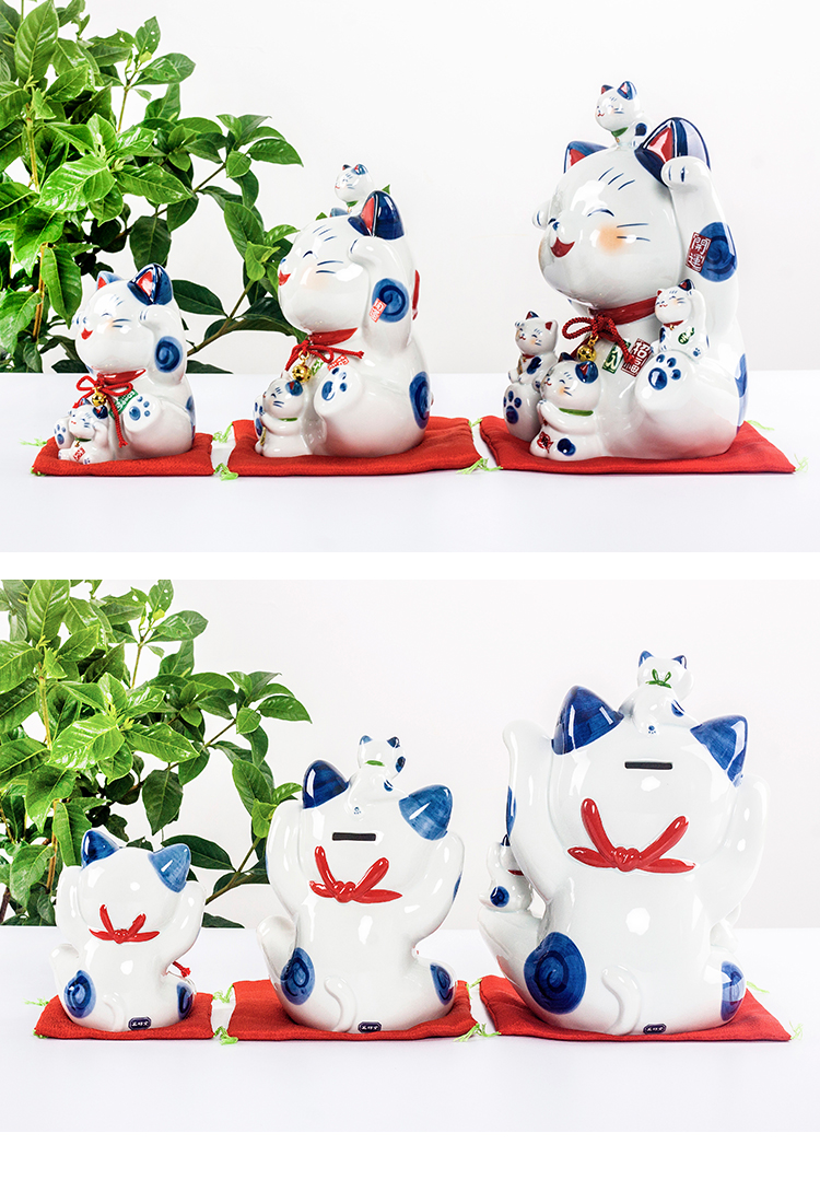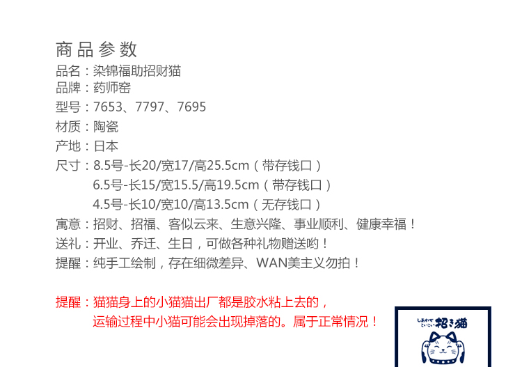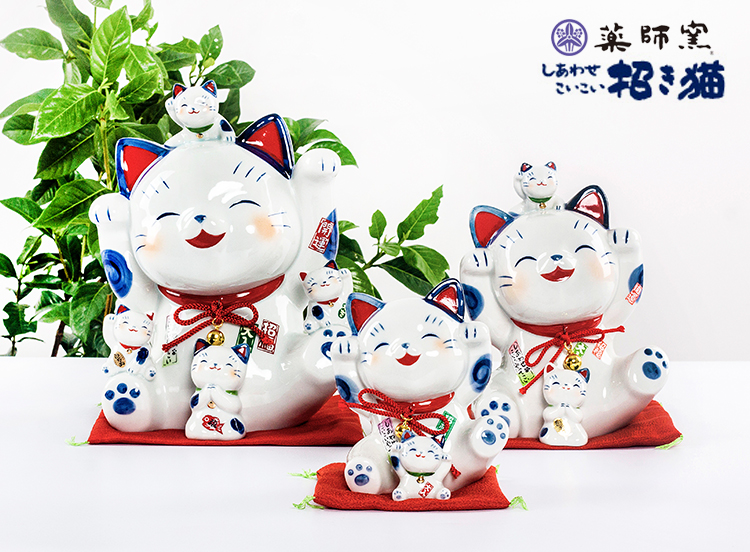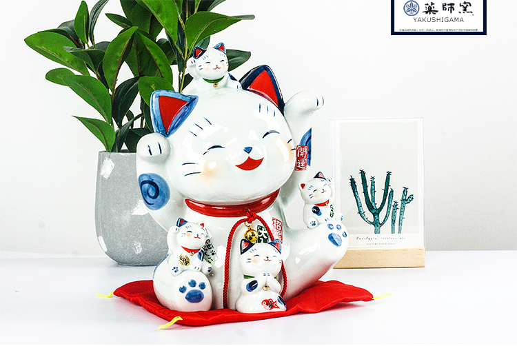 日本進口藥師窯染錦福助招財貓手工陶瓷擺件生日喬遷開業喬遷禮物