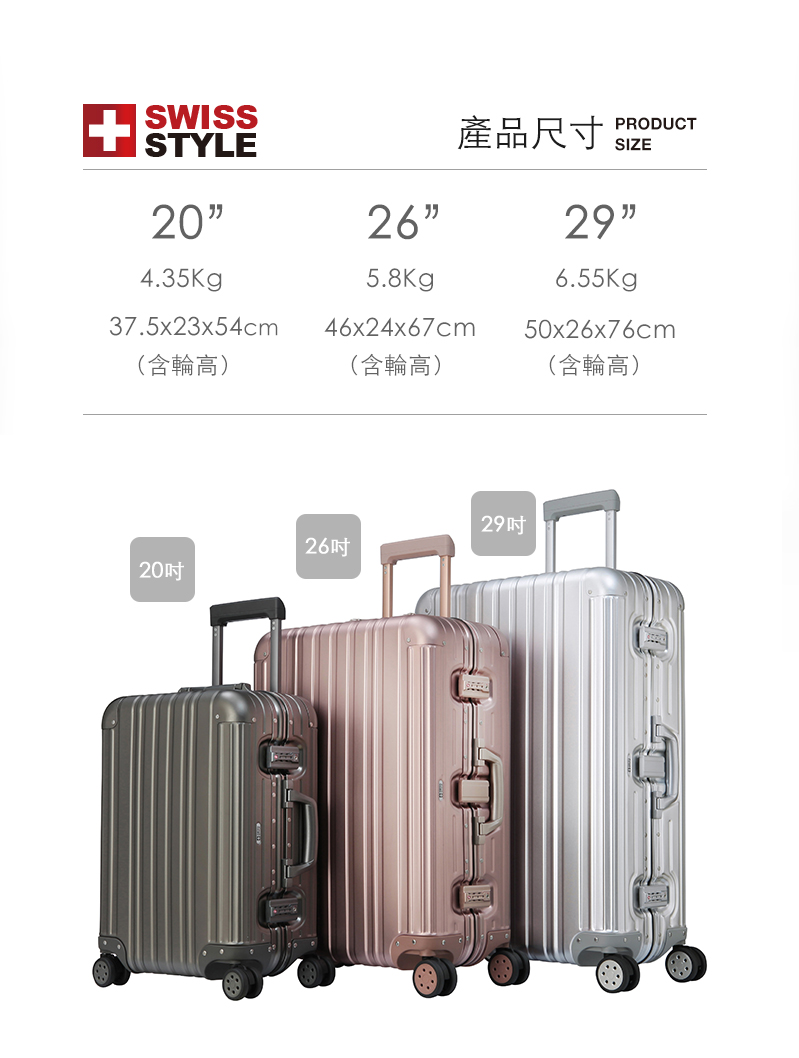 尺寸:26吋/46cm x 24cm x 67cm(含輪高)