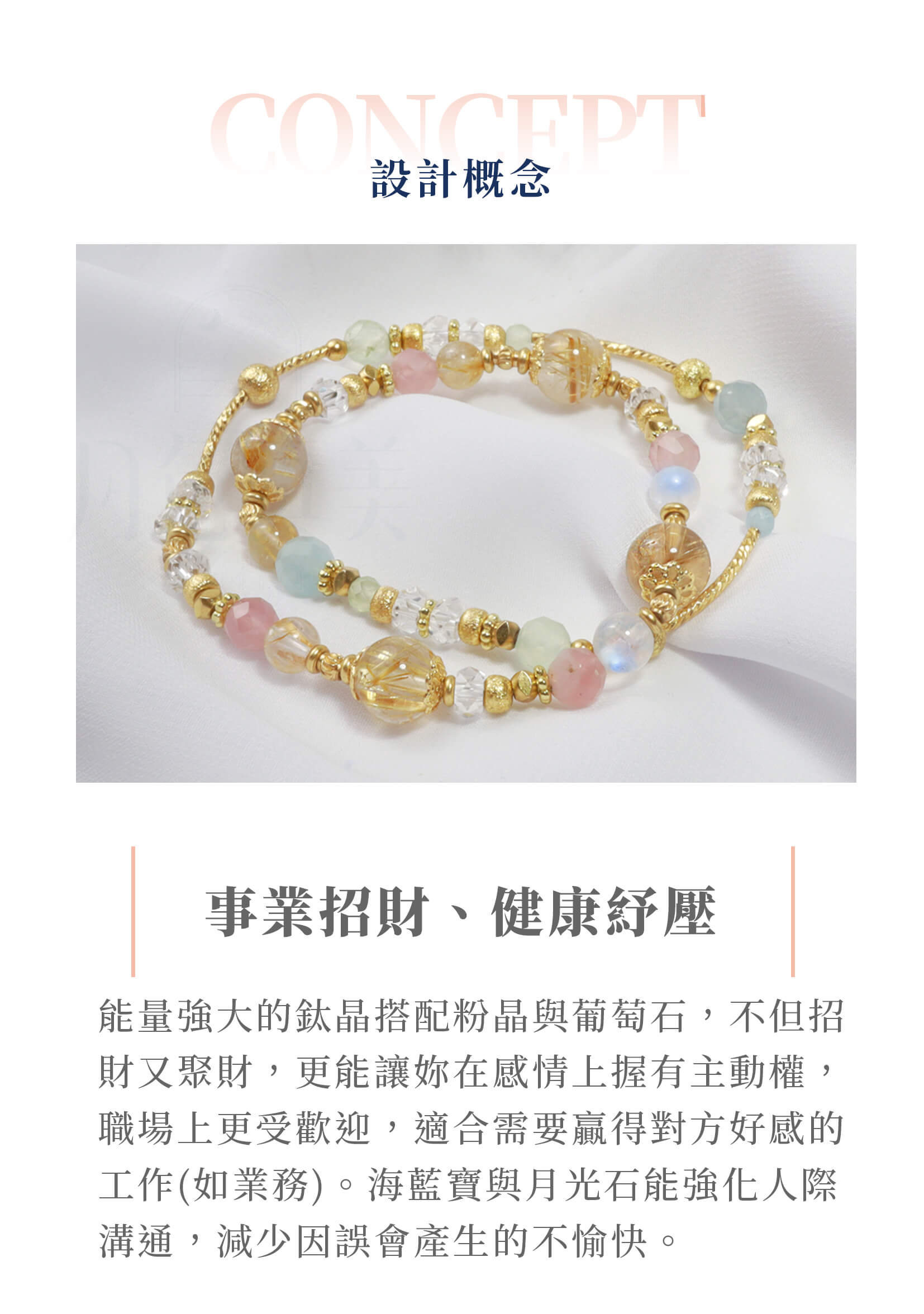 幸福時光派對 | D09 鈦晶粉晶月光石海藍寶手鍊