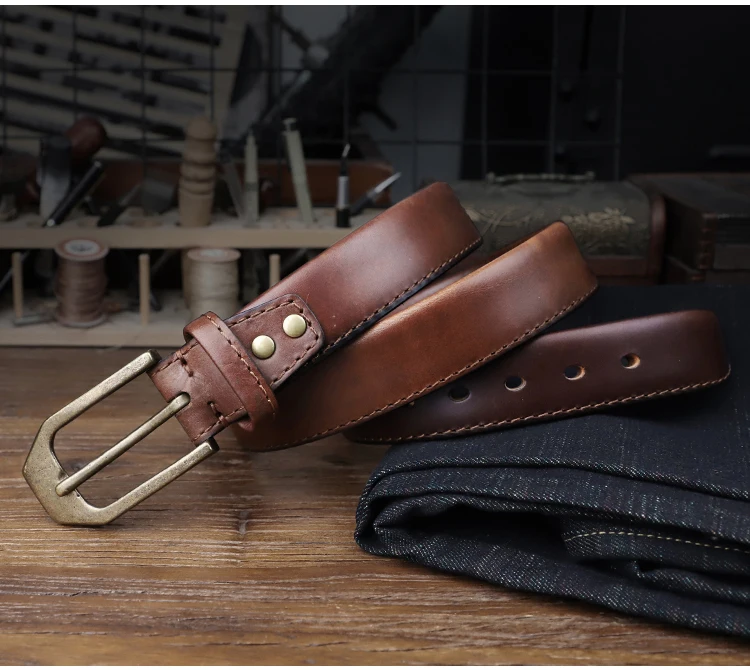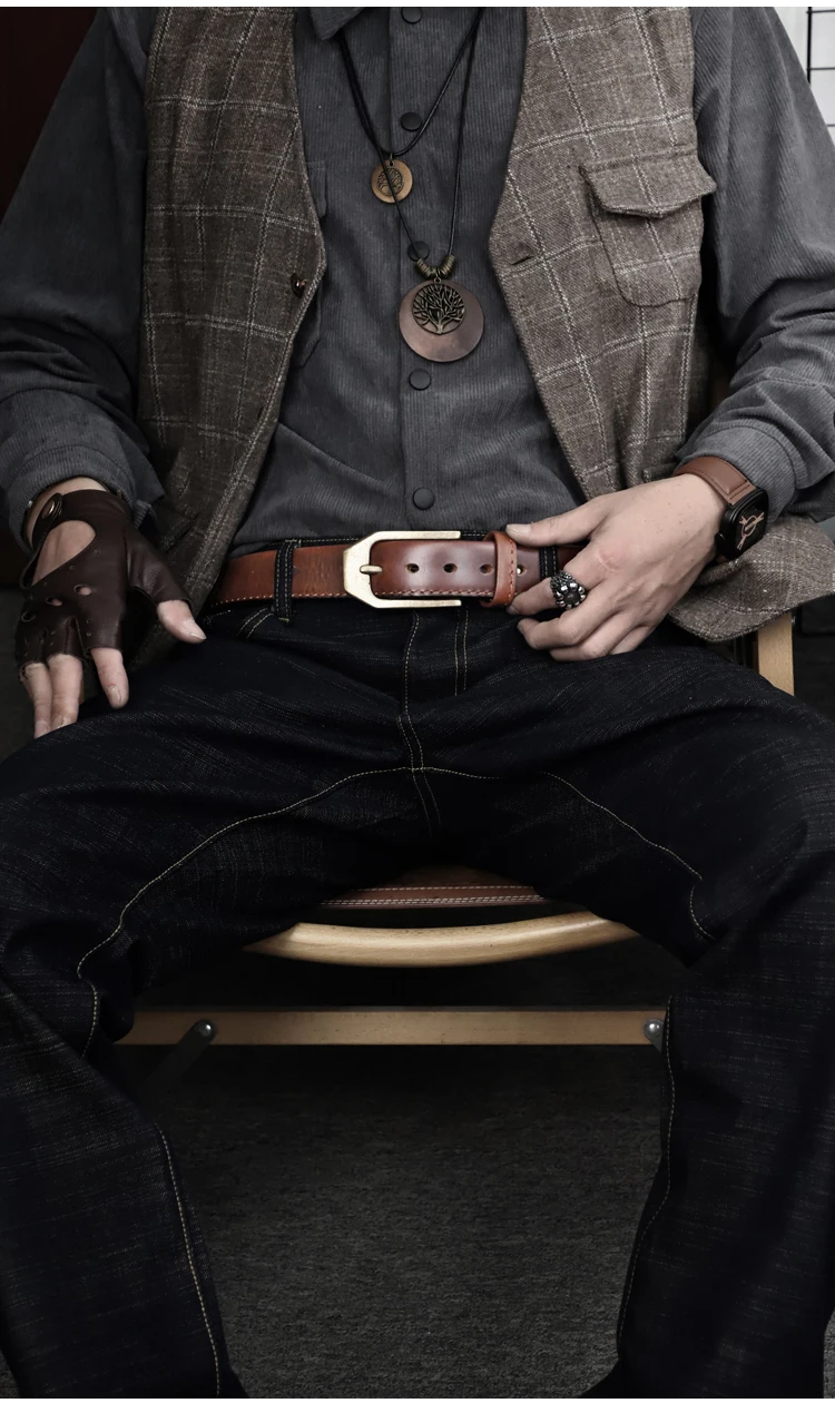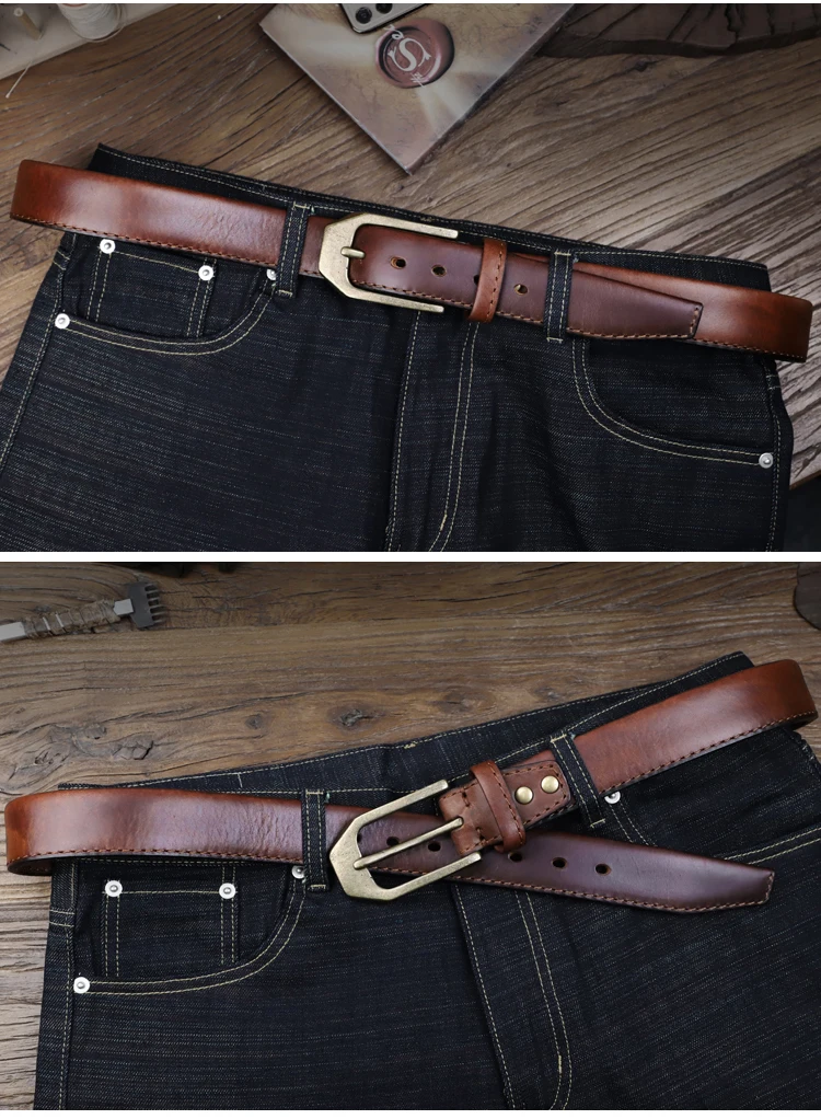 雙層加厚純牛皮腰帶 復古真皮皮帶 寬度3.9cm