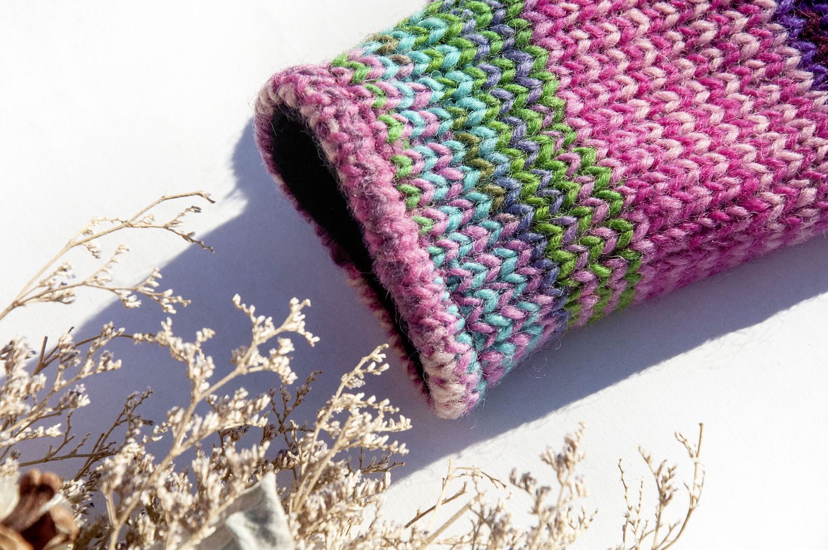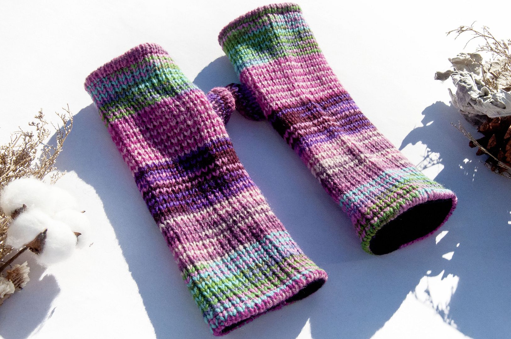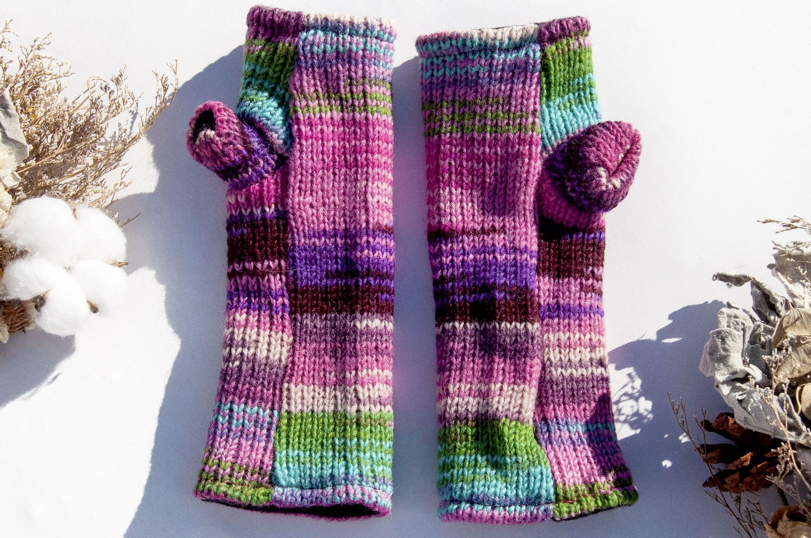手織純羊毛針織手套/露趾手套/內刷毛手套/保暖手套-北歐水果茶色