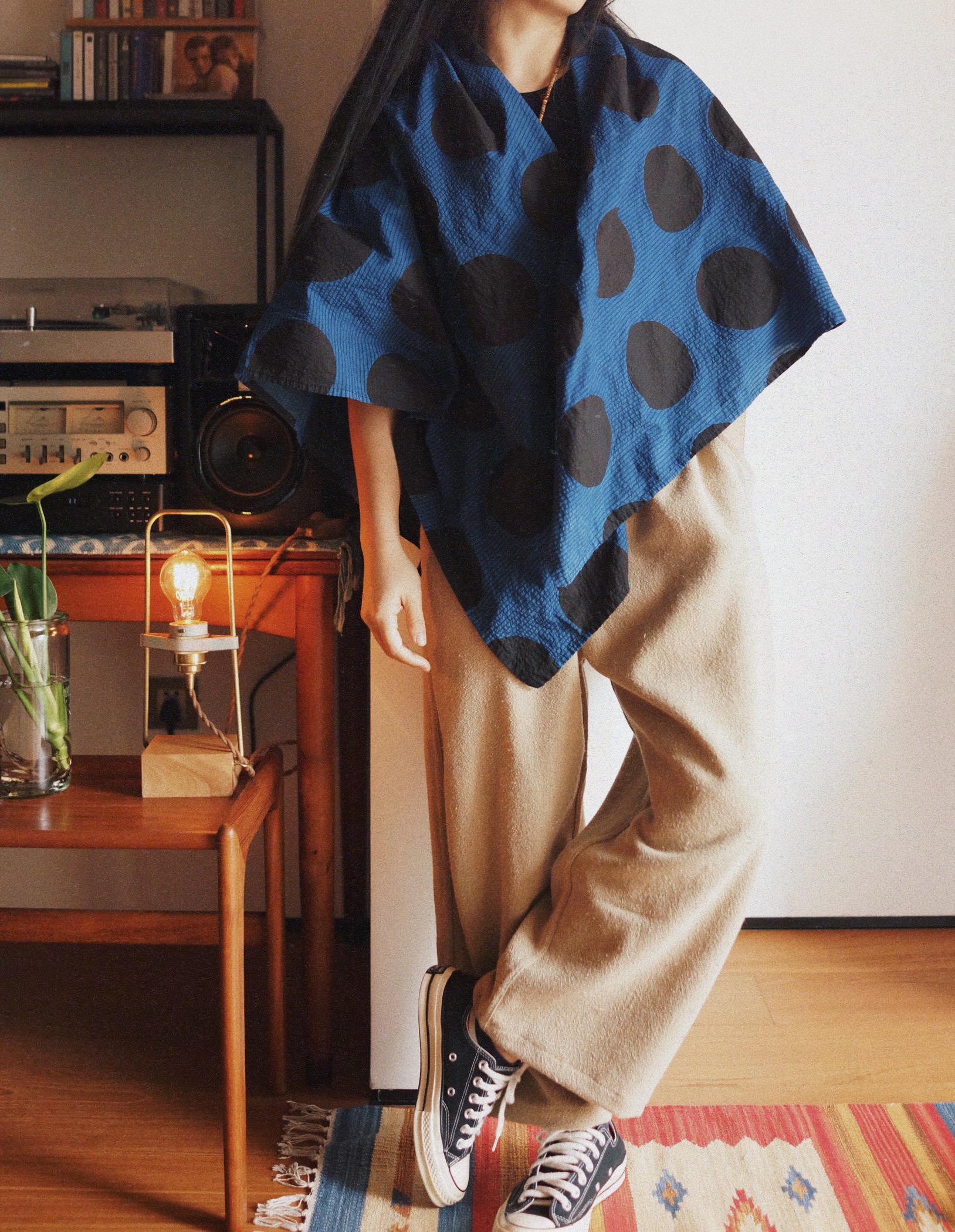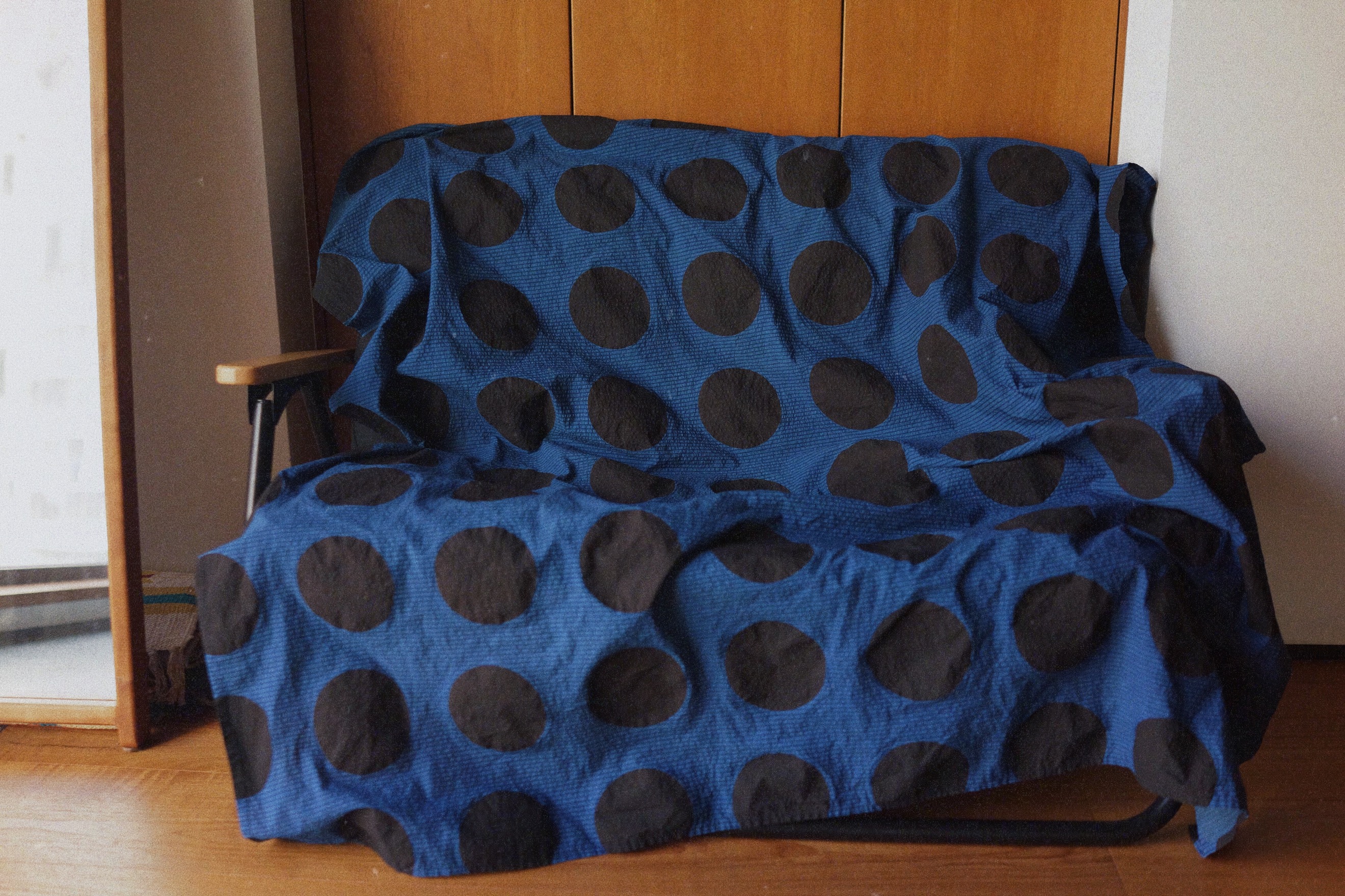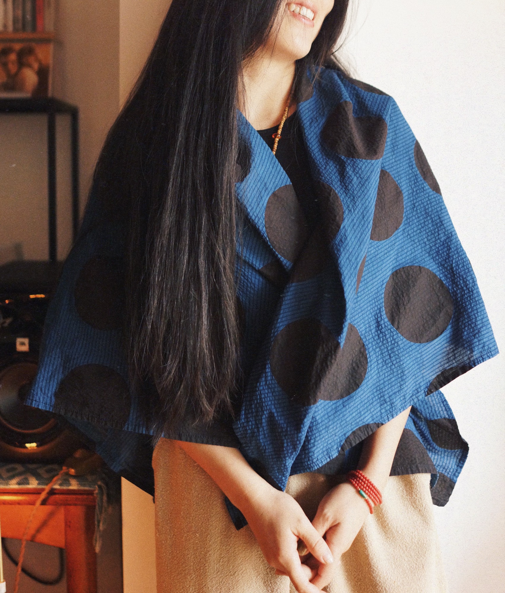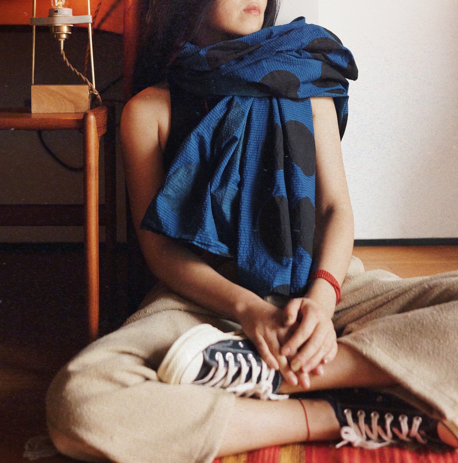 藏青色 蓋布披肩圍巾 環保植物藍染 進口波點提花鹽縮純棉泡泡棉