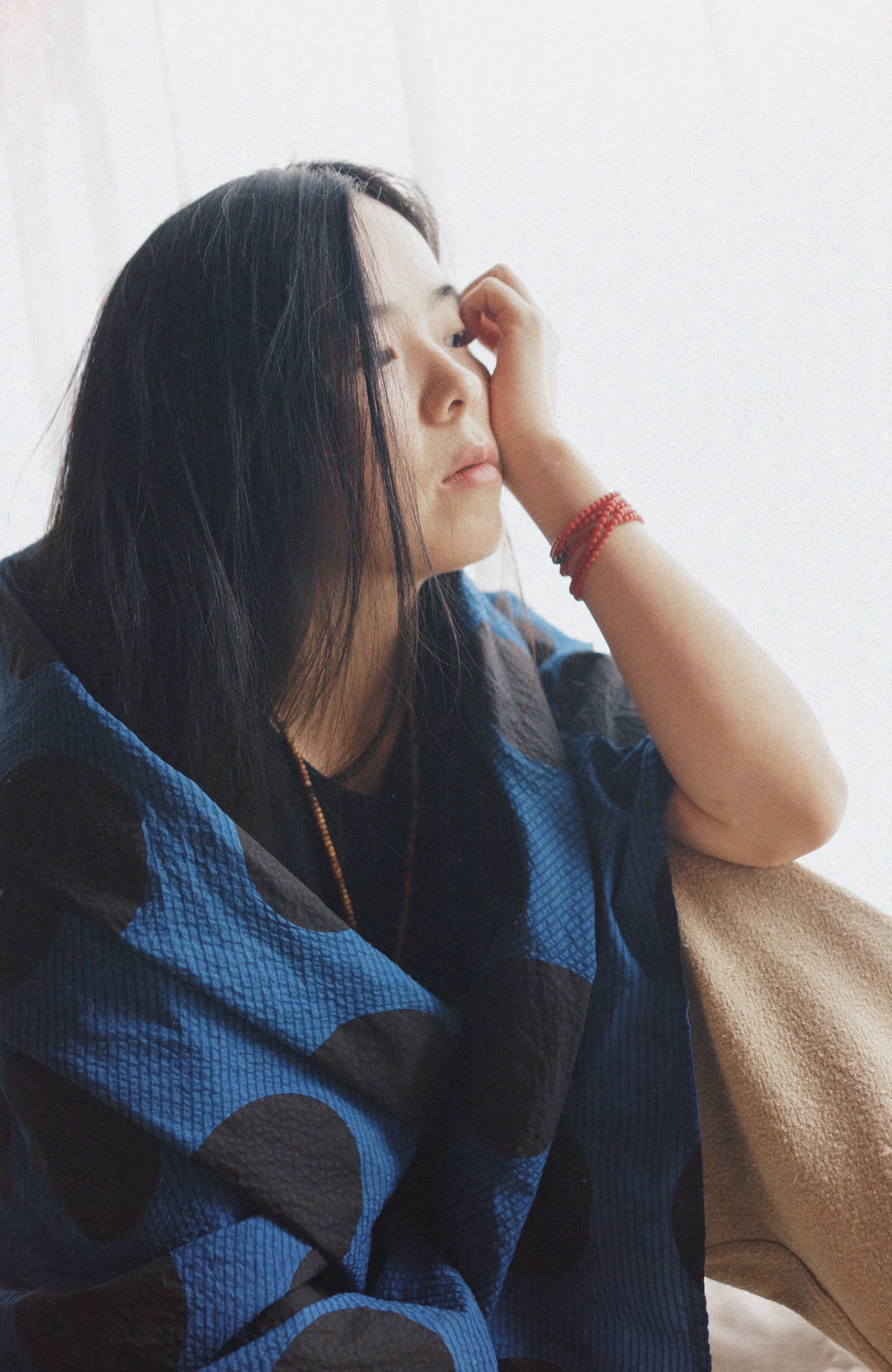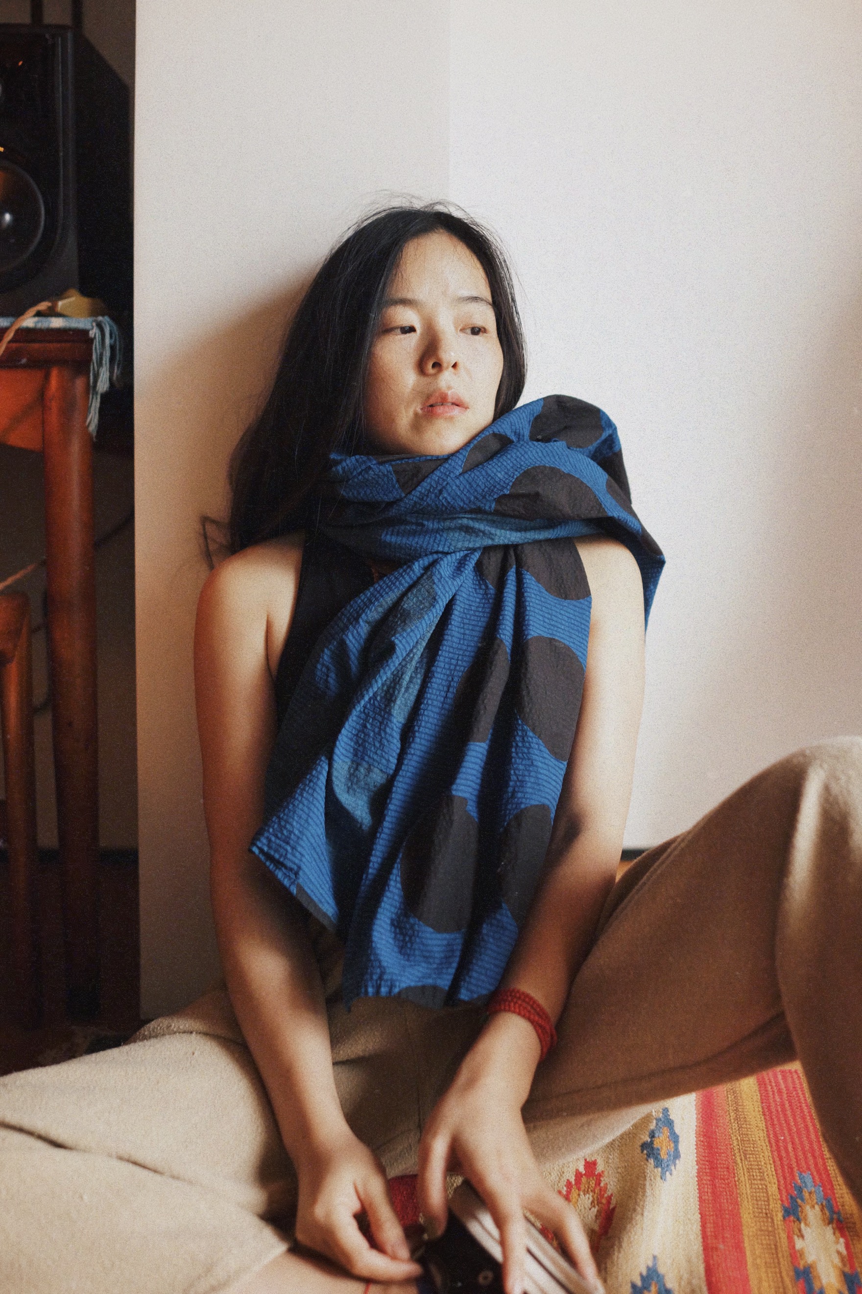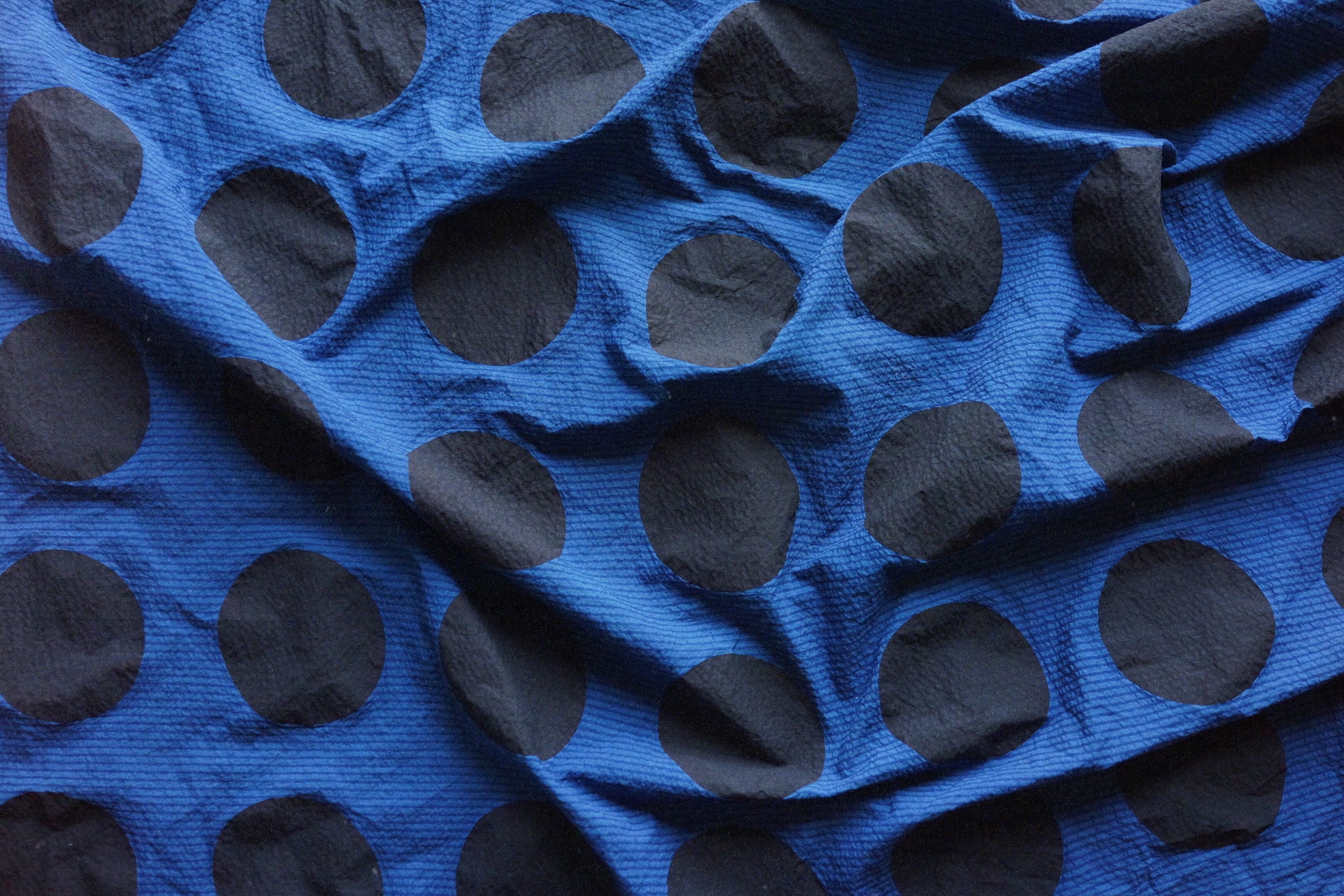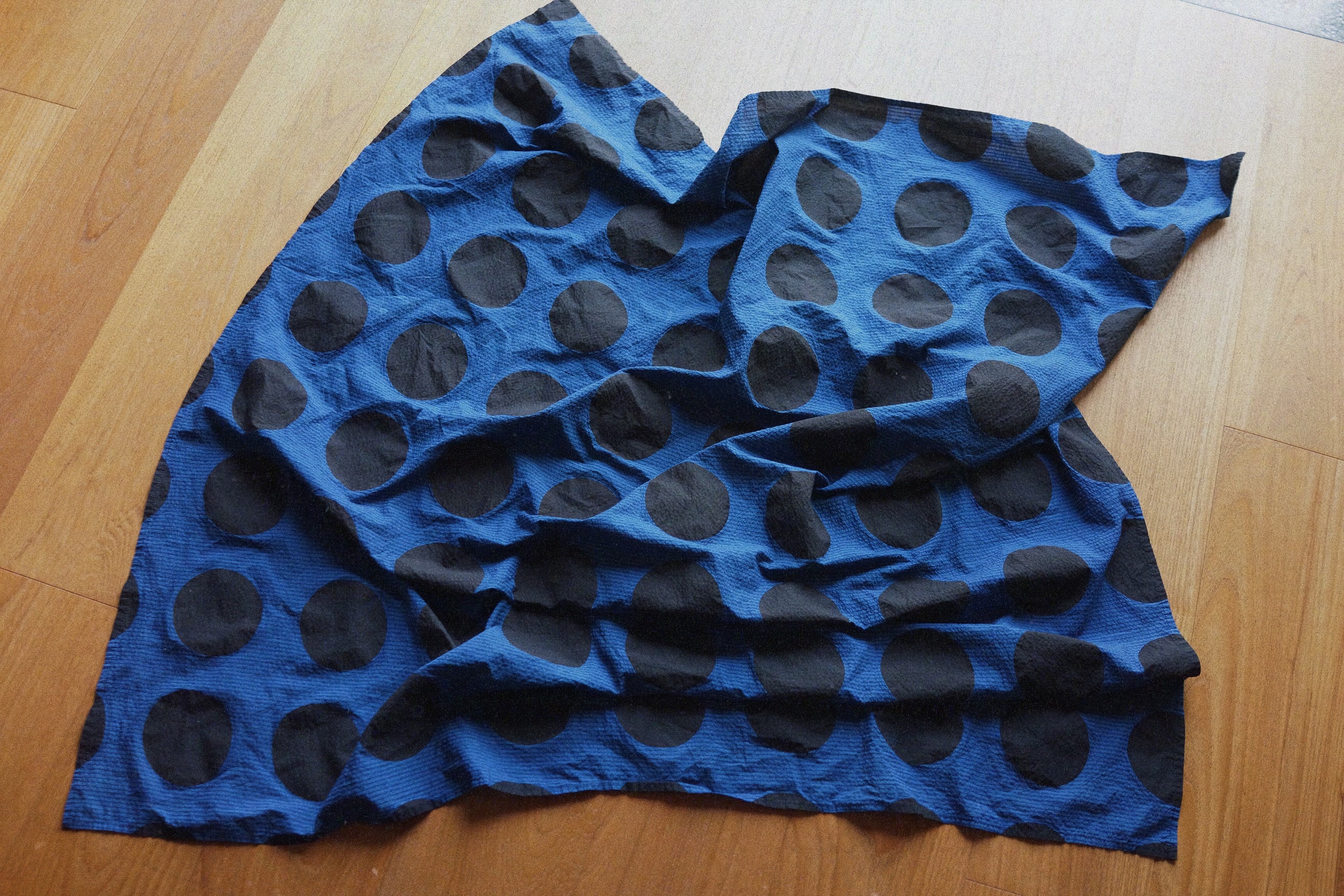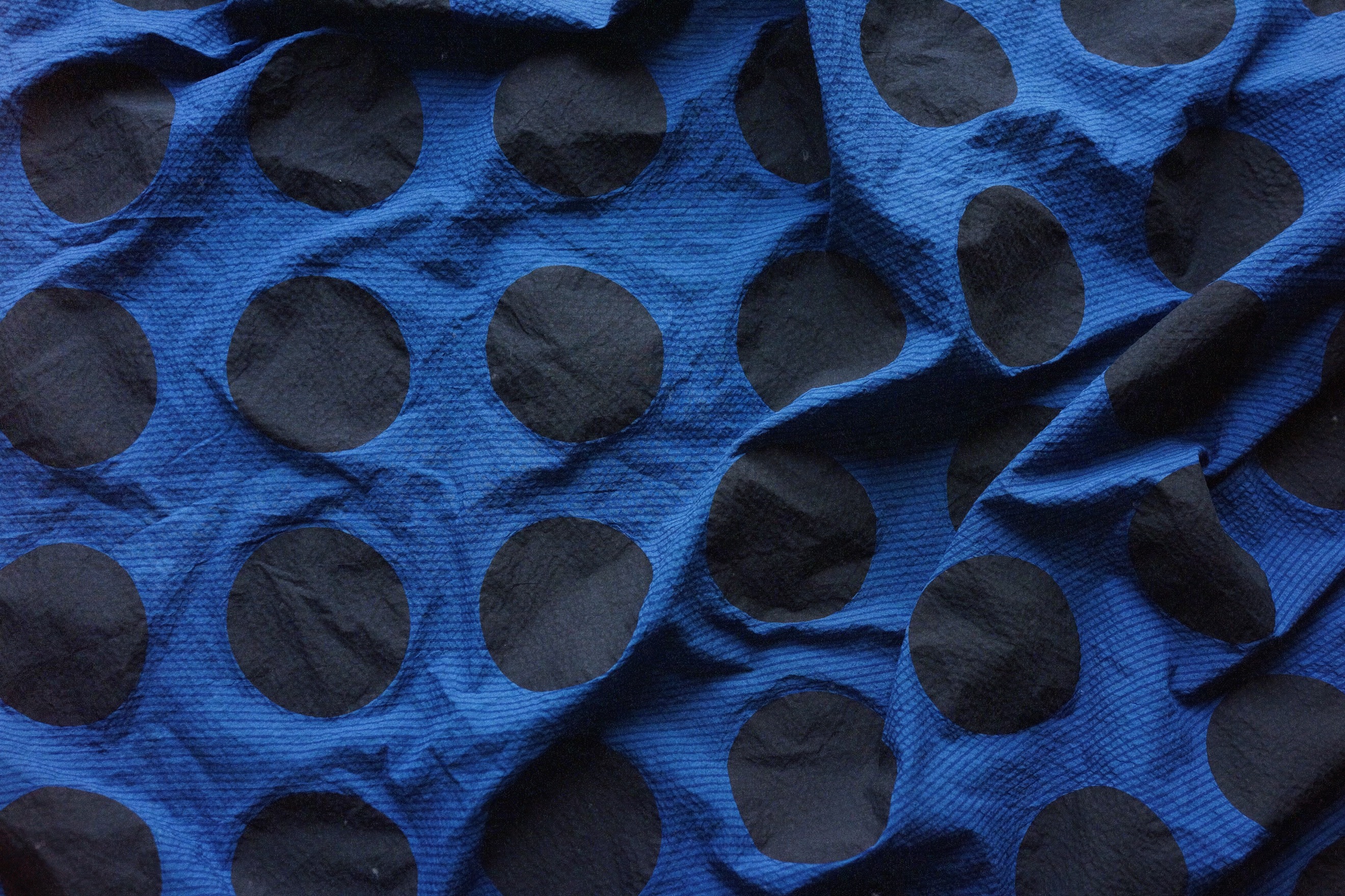 藏青色 蓋布披肩圍巾 環保植物藍染 進口波點提花鹽縮純棉泡泡棉
