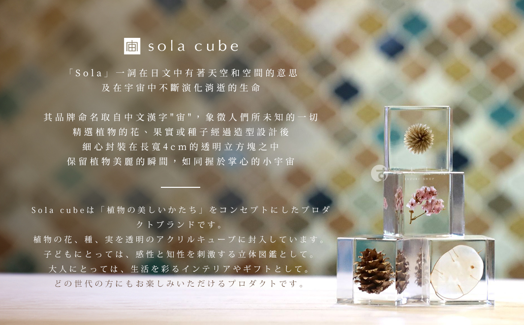 ● sola cube Slice採手工製作,植物、礦物的大小、色澤多少會有些許不同。