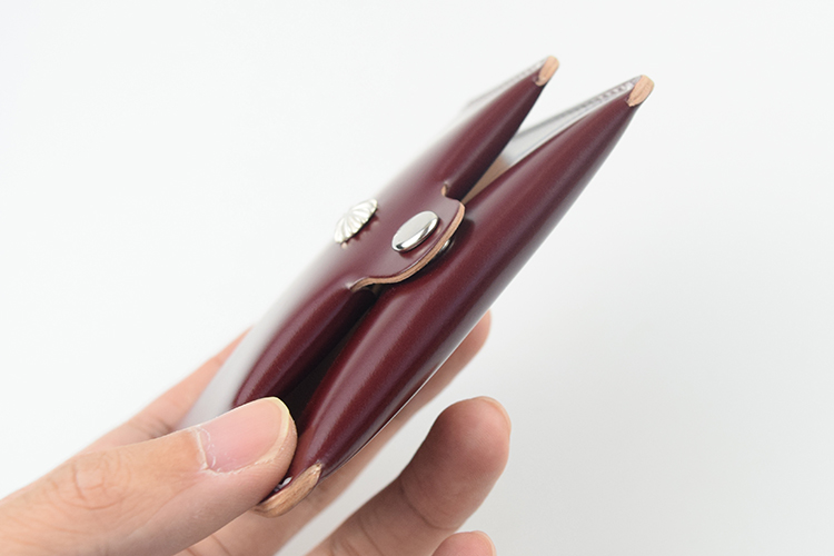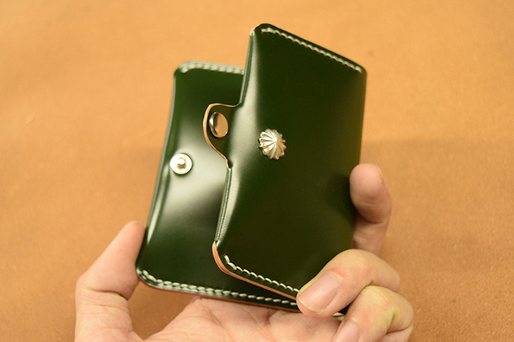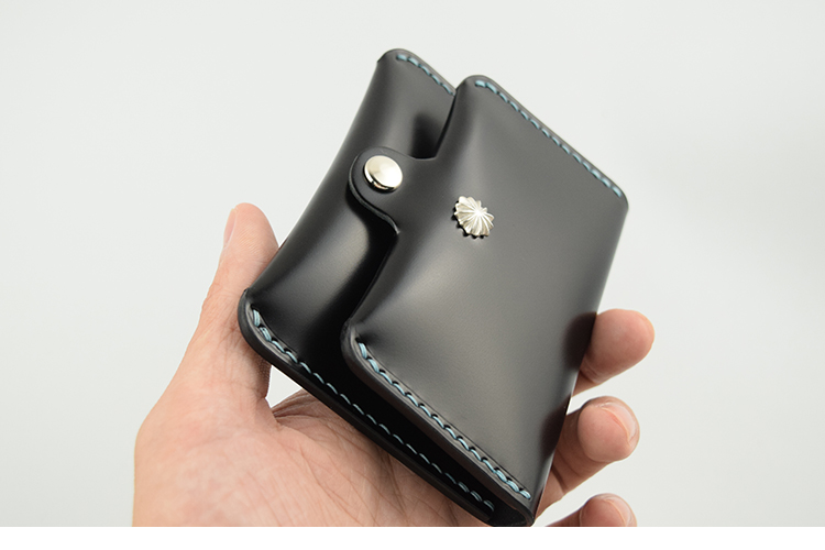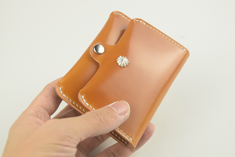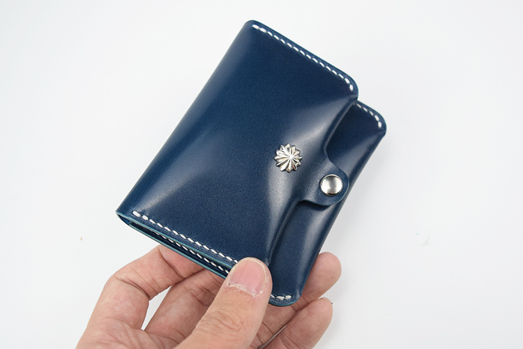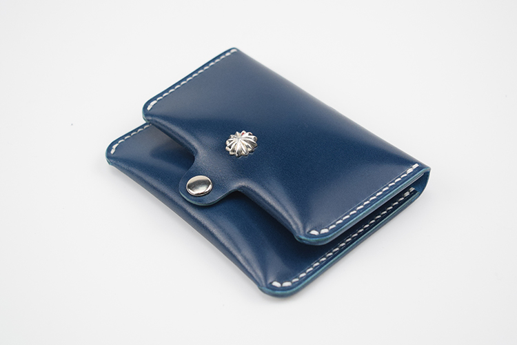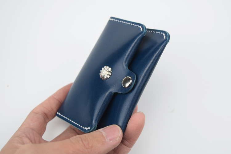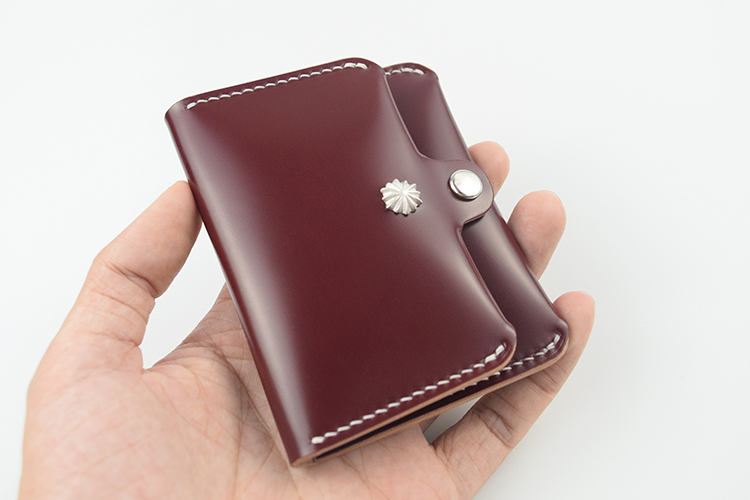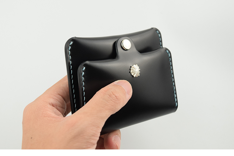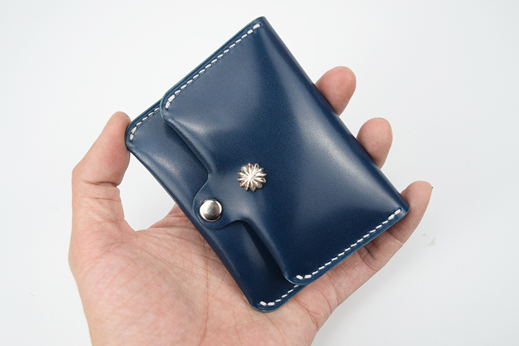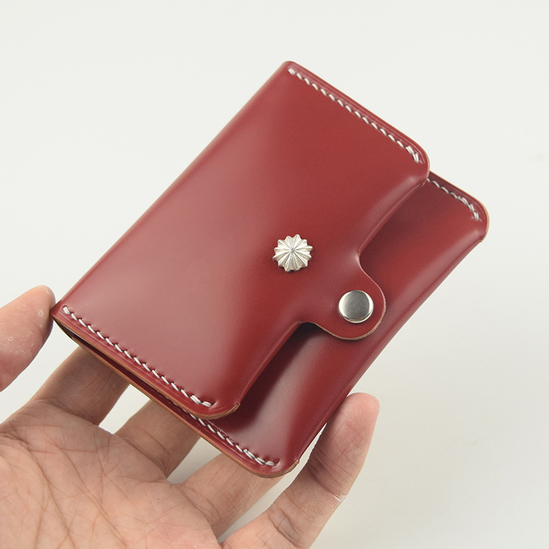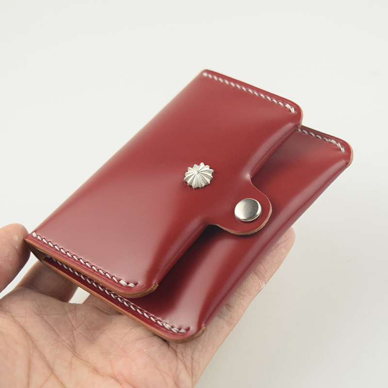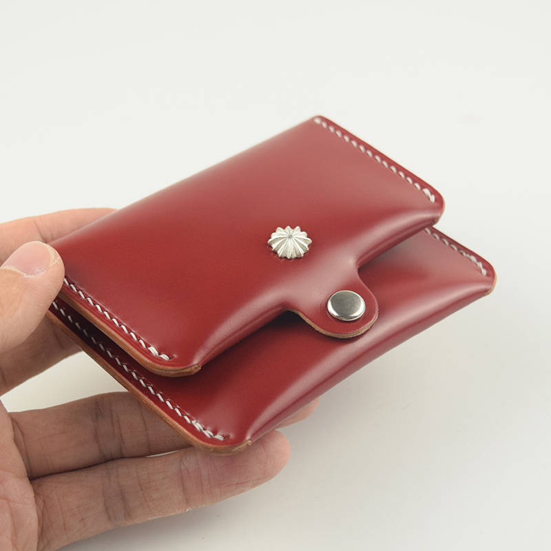 馬臀皮手工錢包迷你卡包便攜mini隨身零錢包鑲嵌925純銀菊花銀釘