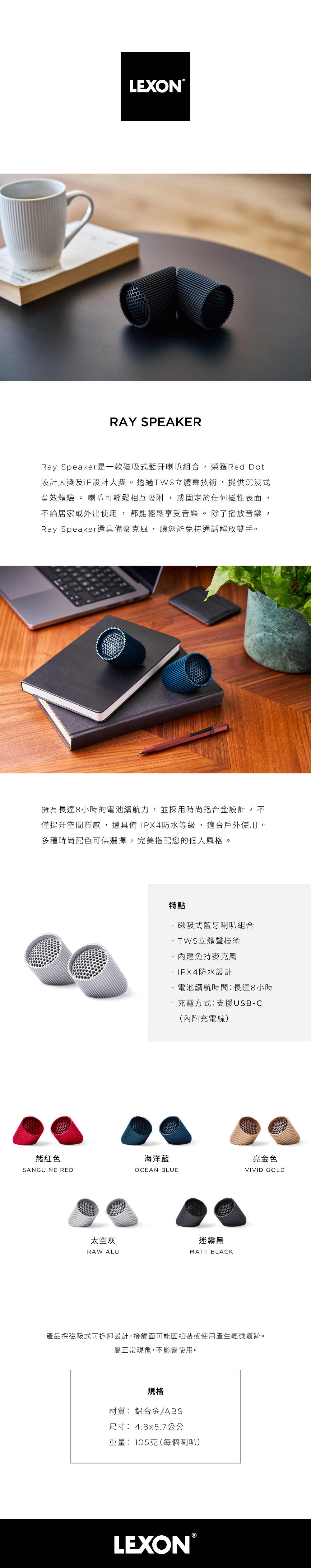 LEXON RAY SPEAKER 藍牙喇叭 - 迷霧黑【現貨】