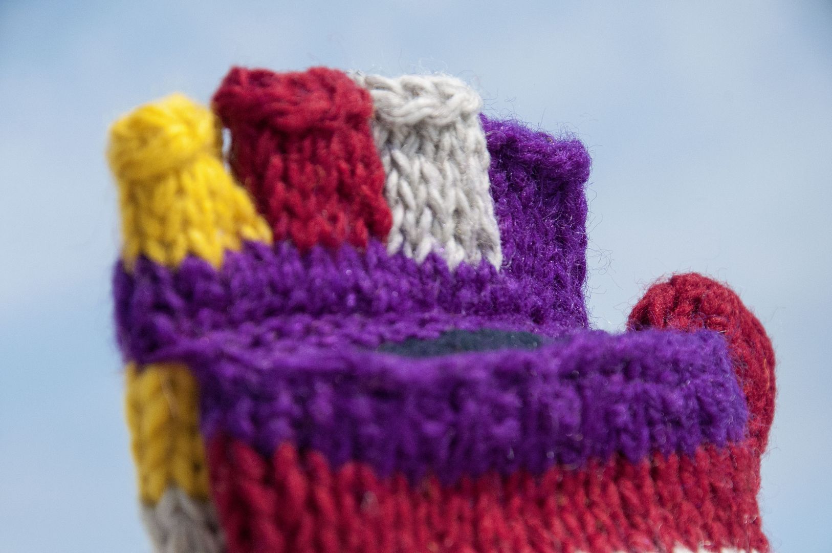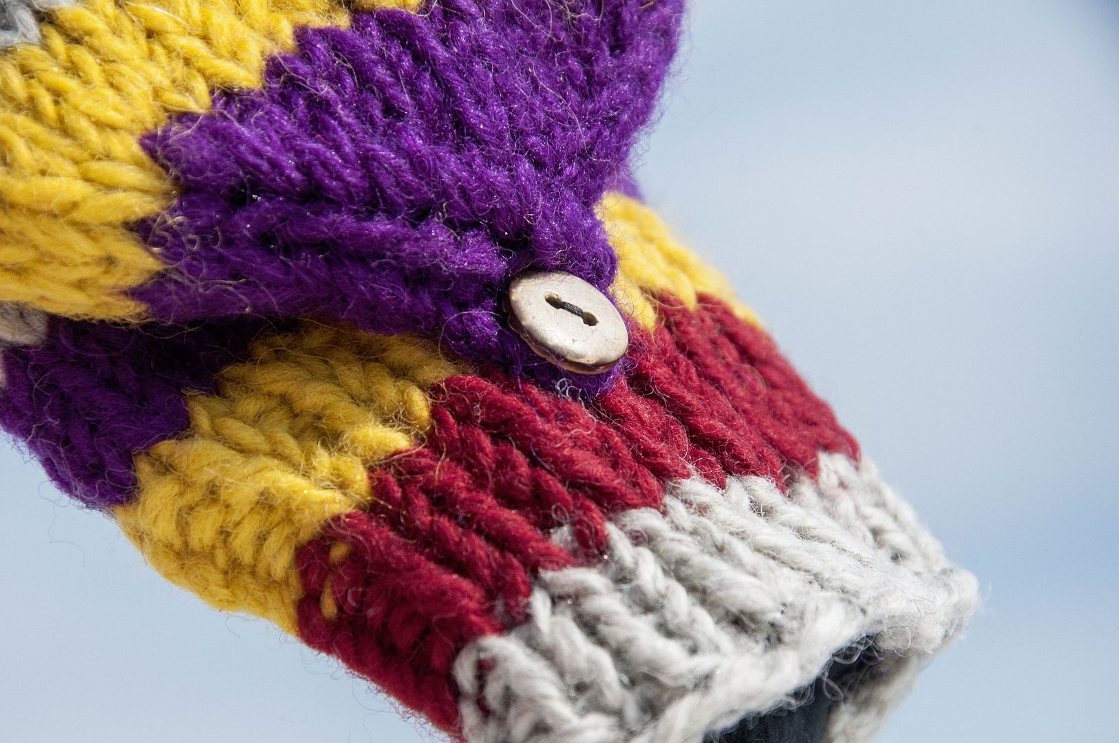 ▲由設計師設計,尼泊爾手工編織的純羊毛手套,帶出春天陽光下的溫暖氛圍