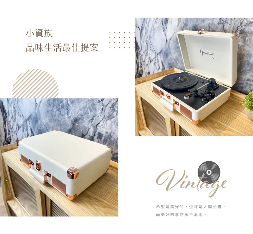 此款機子特選的用料,白色搭配玫瑰金,潔淨而夢幻,復古懷舊時尚綜合體,看起來質感非常好,無論是擺著或是用起來都非常好,此外喇叭的部分特別升級為4歐5瓦的功率(其他別家相類似機種都是4歐3瓦的)