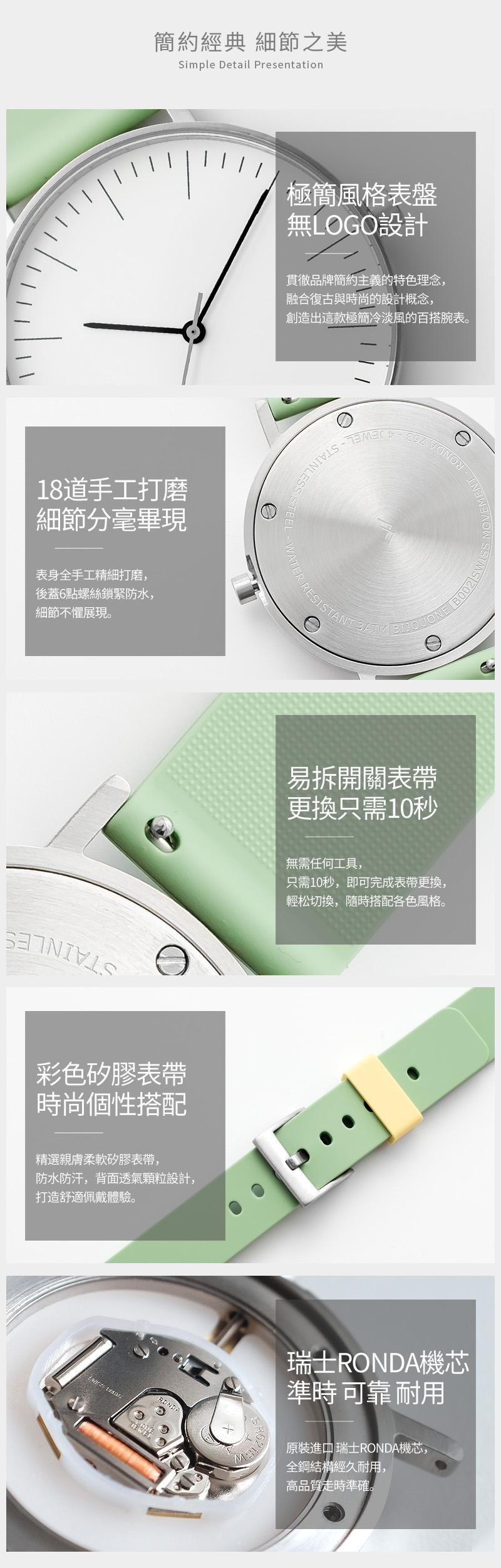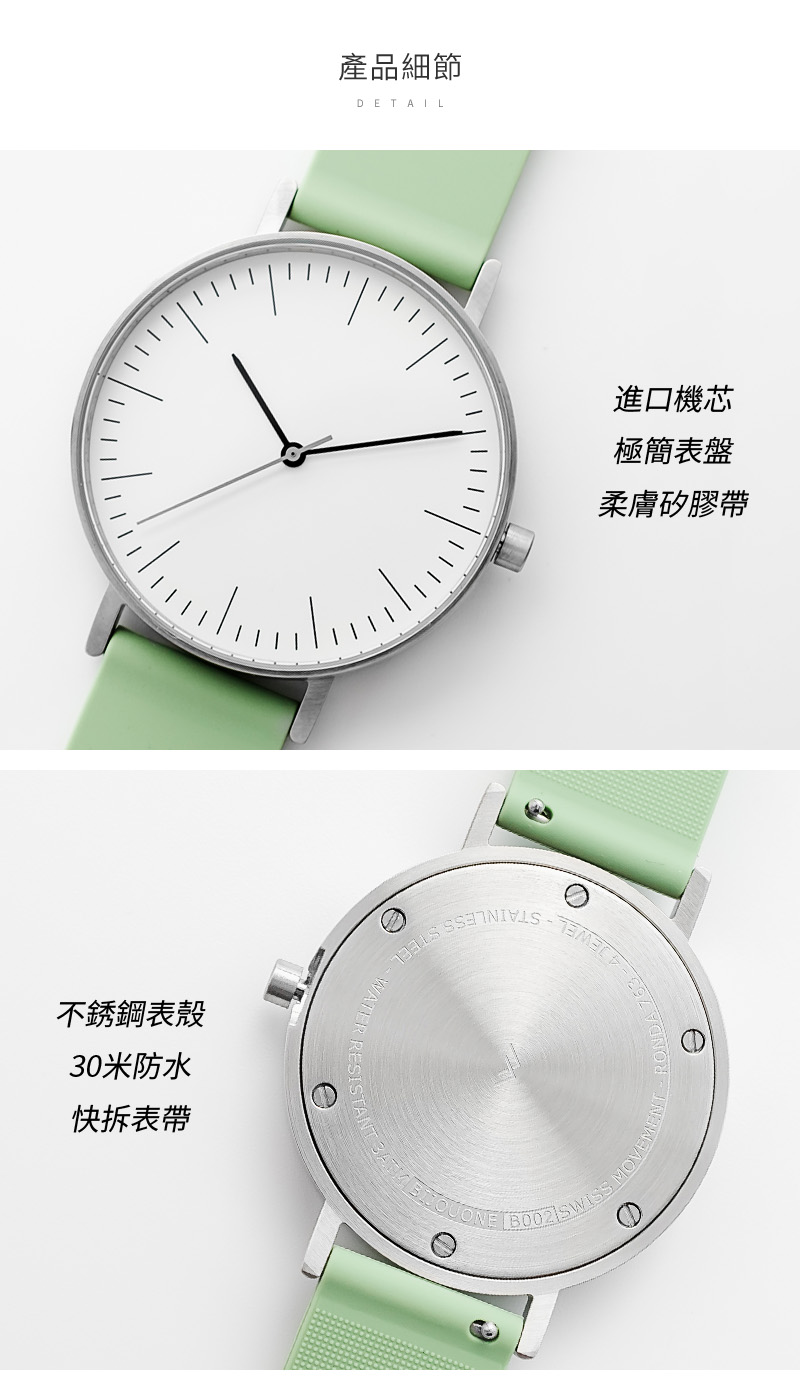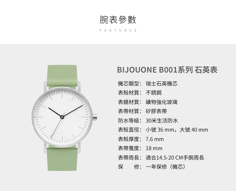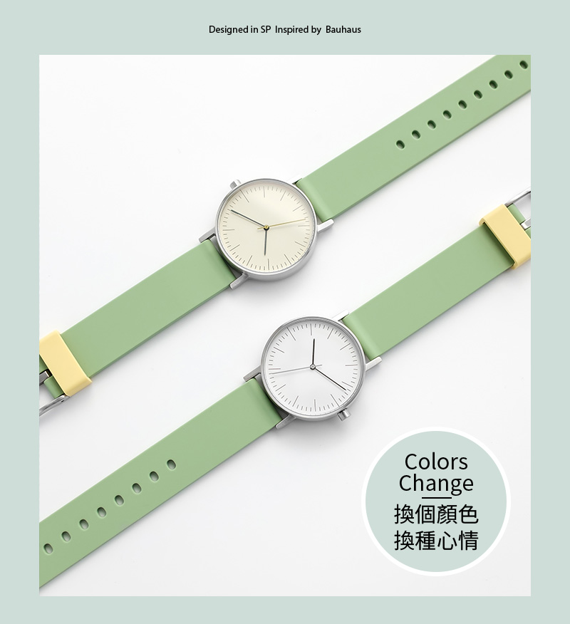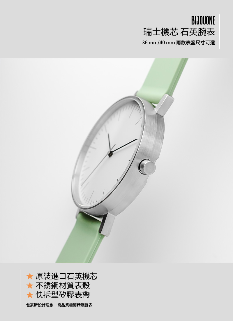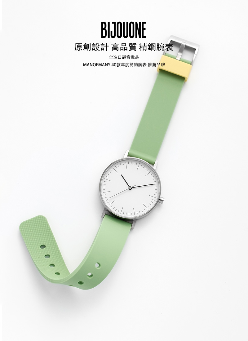 BIJOUONE彼樹灣 B001系列 牛油果色硅膠表帶設計石英錶,
