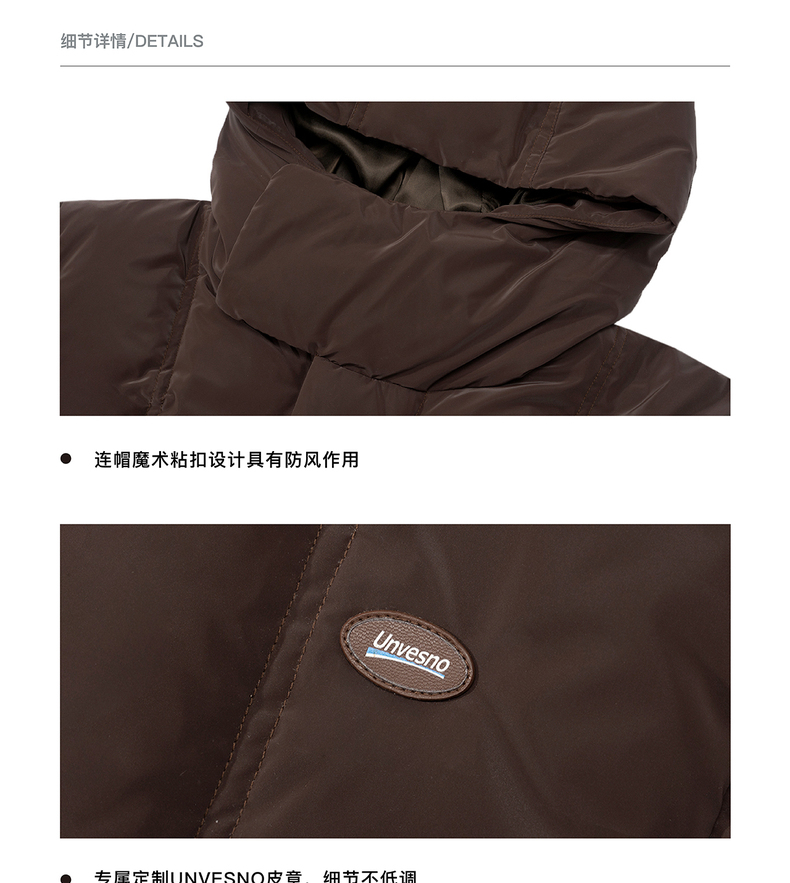 Unvesno (UN) 怪奇小鎮 白鴨絨巧克力冬季連帽輕薄羽絨服 CT-2161