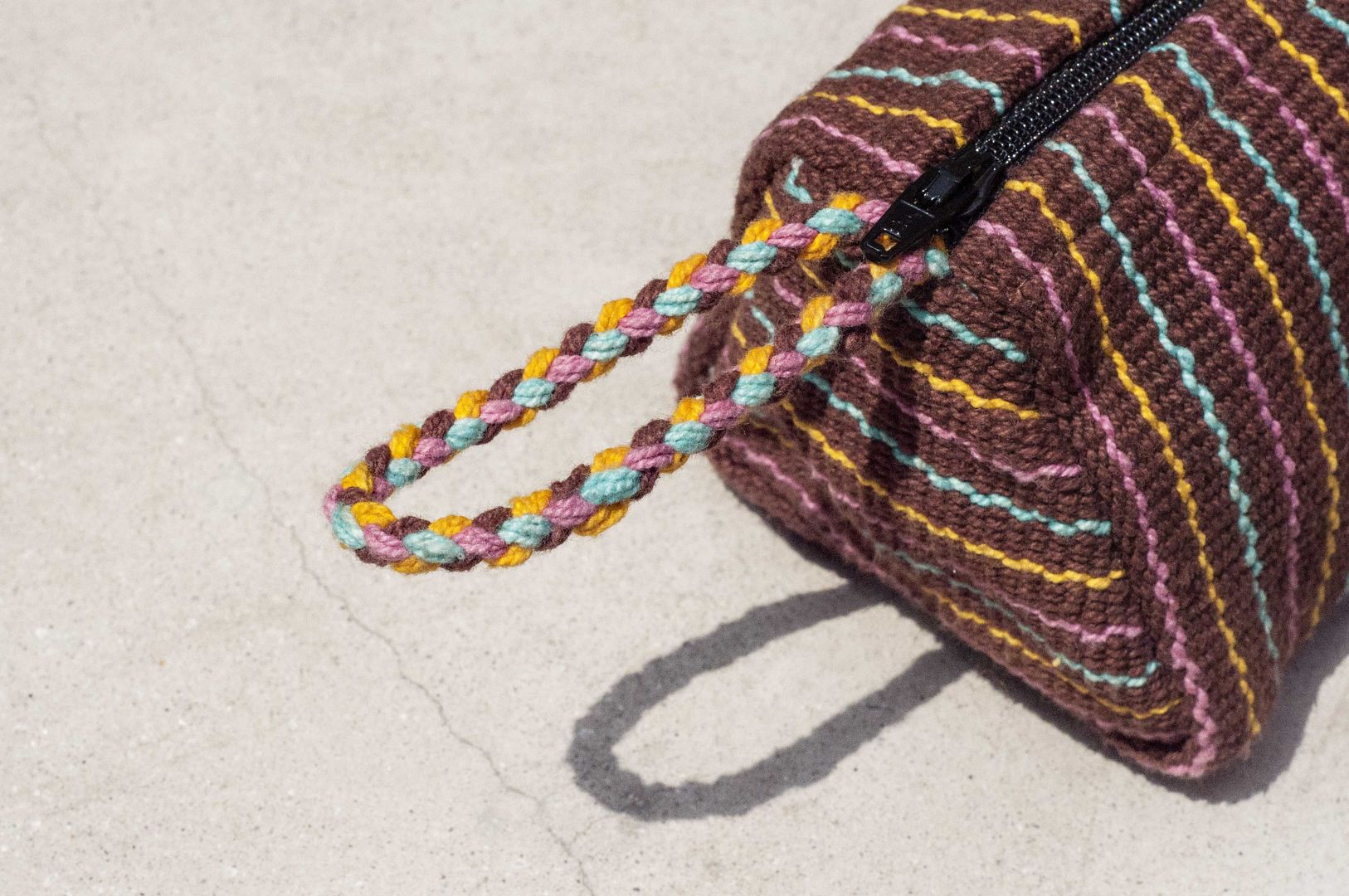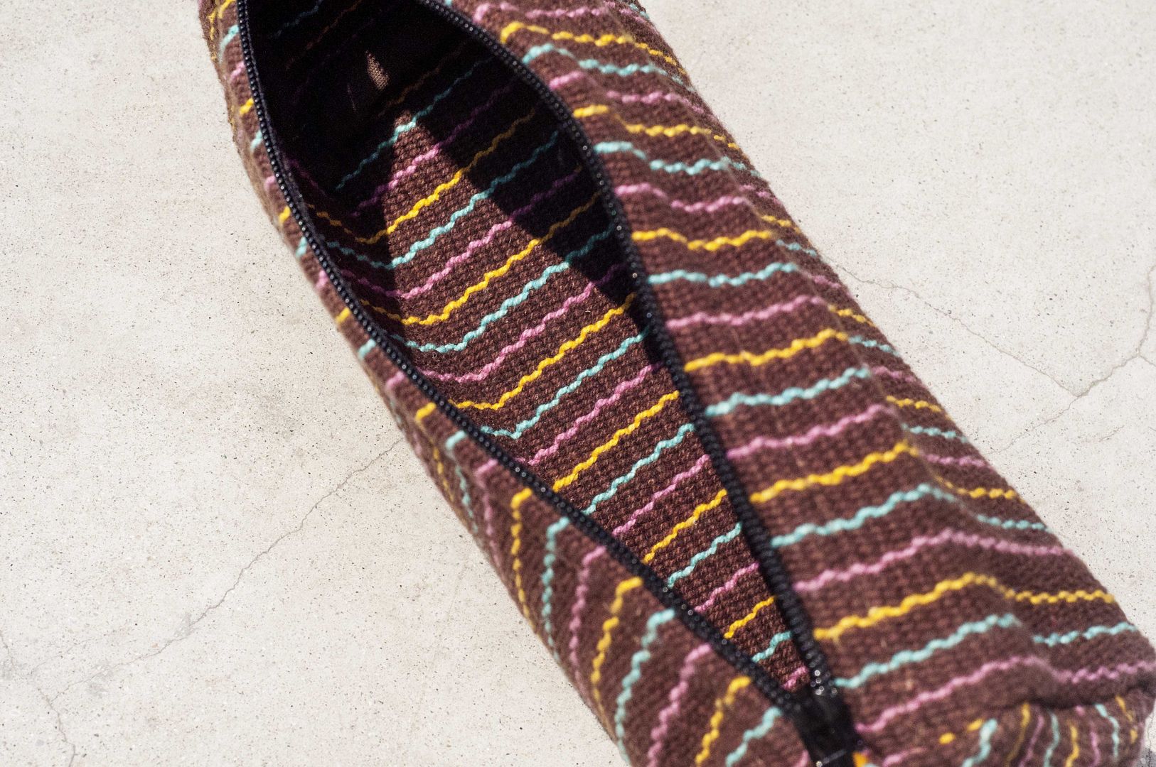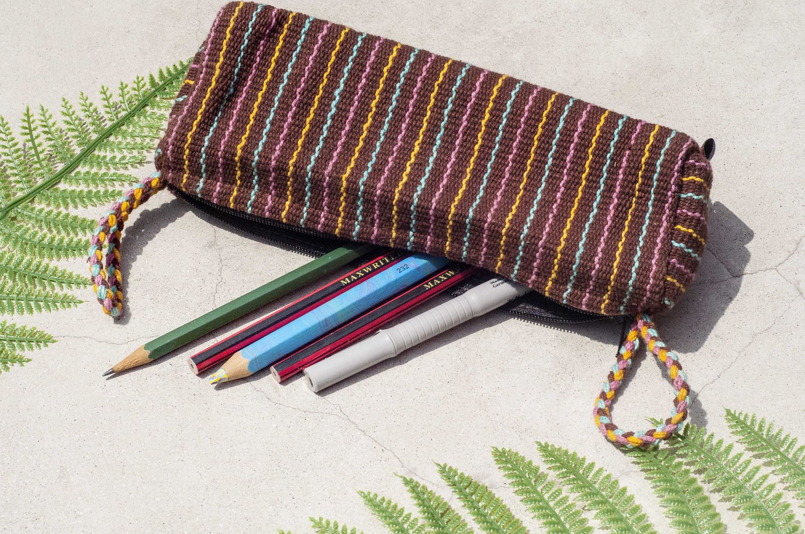 手感帆布筆袋 收納袋 編織感筆袋 民族風收納袋-三角御飯糰