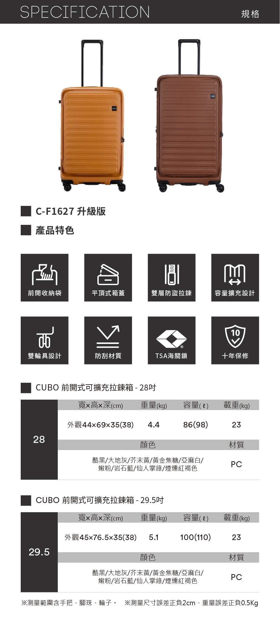 新色 升級版【LOJEL】CUBO FIT29.5吋前開擴充防盜拉鍊箱 亞麻白