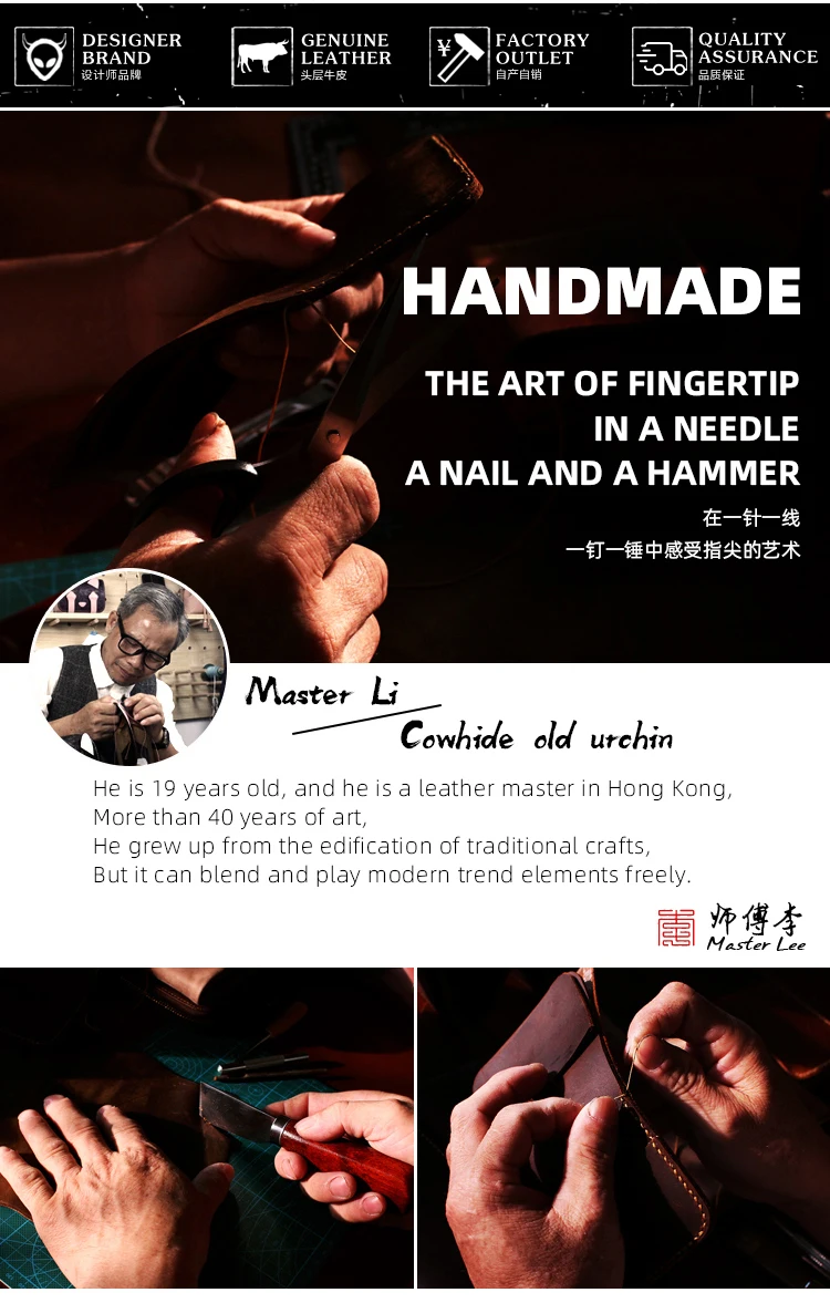 我們選用優質復古頭層牛皮製作,牛皮本身會存在一些天然屬性,如生長紋、血筋、摩擦出的顏色變化、皮斑、紋路不均勻、蚊蟲叮咬,均不屬於質量問題。手工製作的過程中,也會常常留下指甲印、刮痕、壓印、打磨痕跡等等問題,也不屬於質量問題。